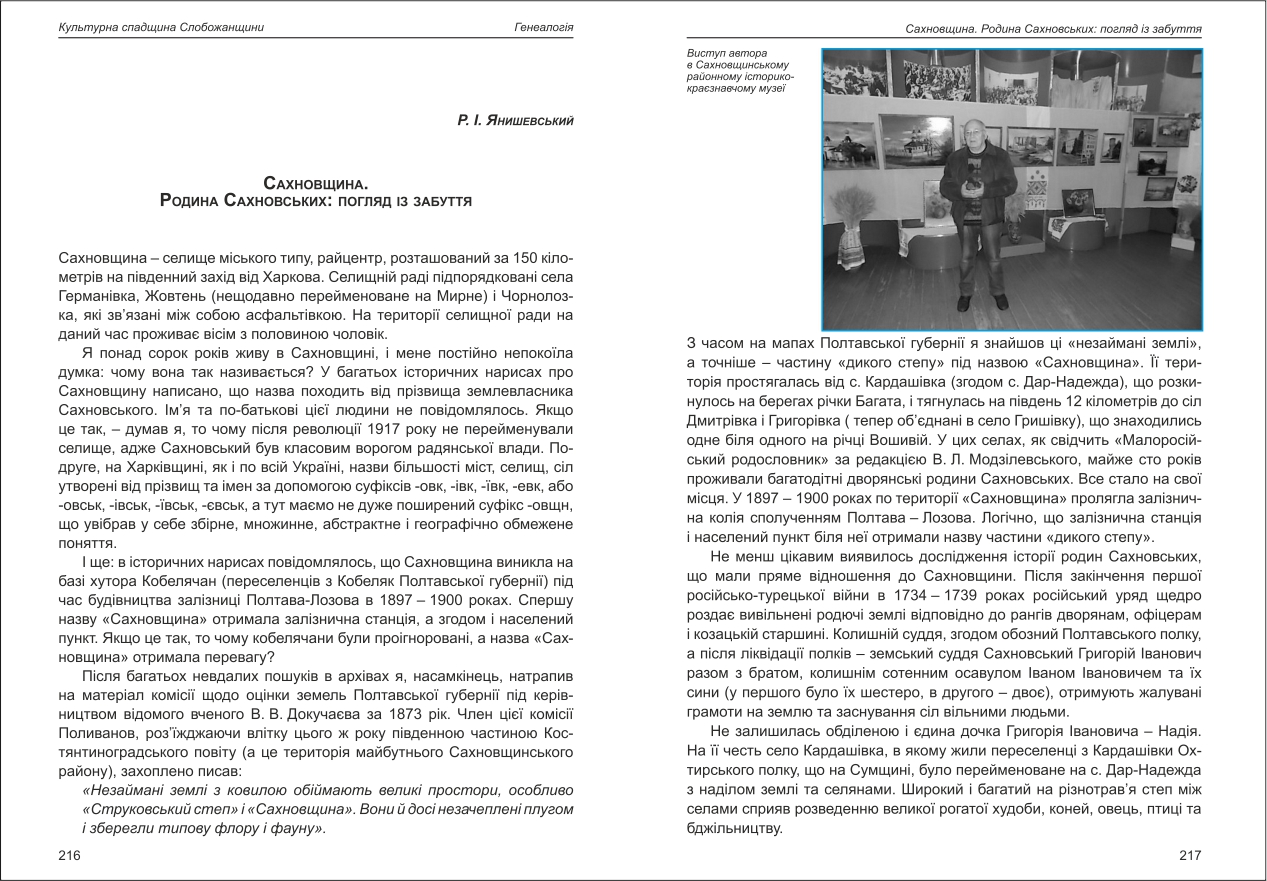 Янишевський: Сахновщина. Родина Сахновських: погляд із забуття