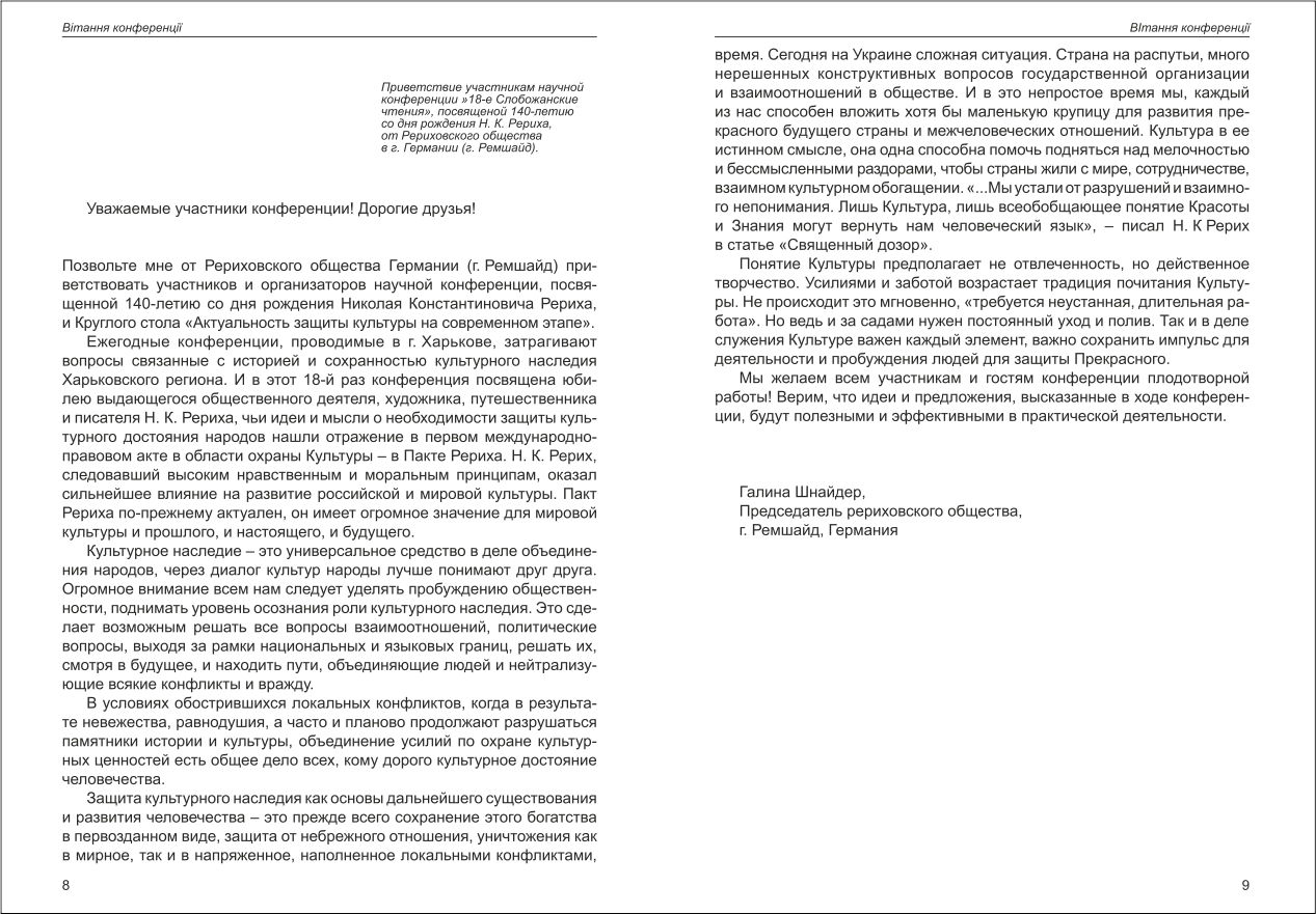 Шапошнікова: Актуальность Пакта Рериха в современном мире