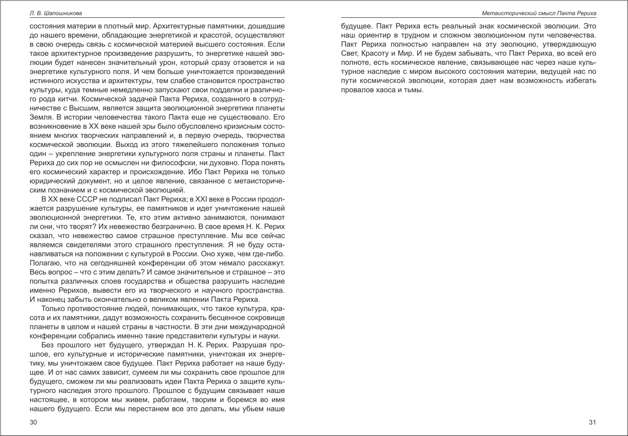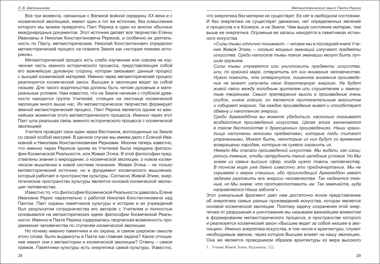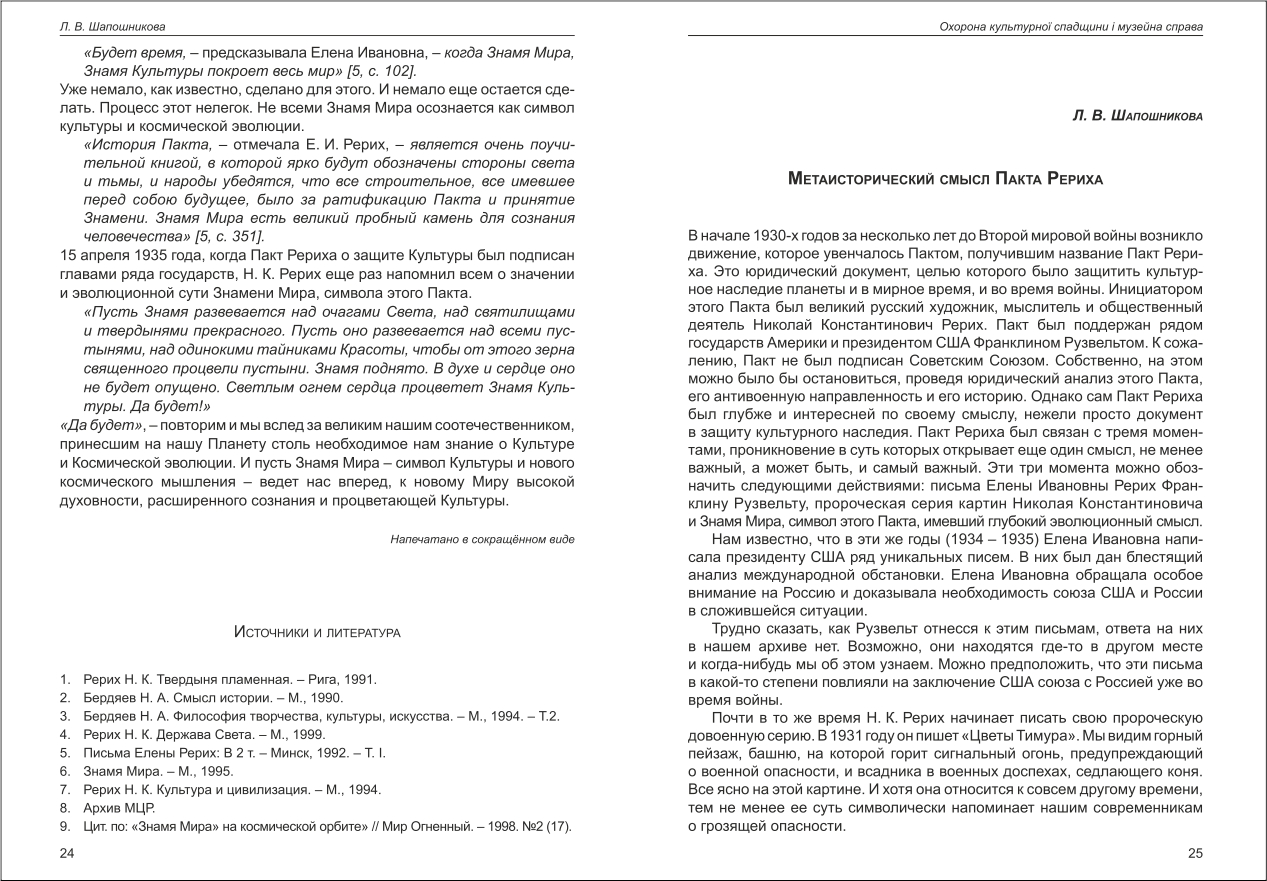 Шапошнікова: Метаисторический смысл Пакта Рериха