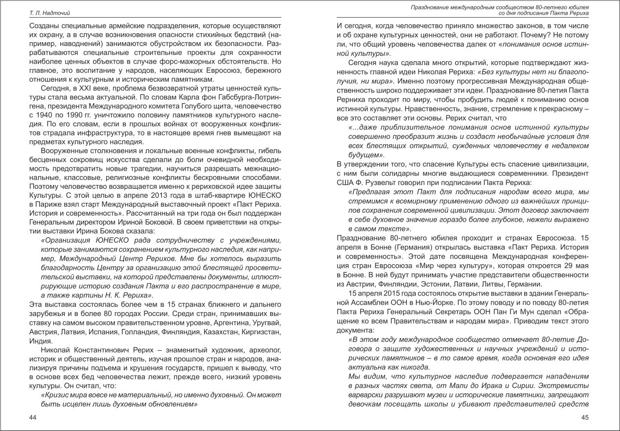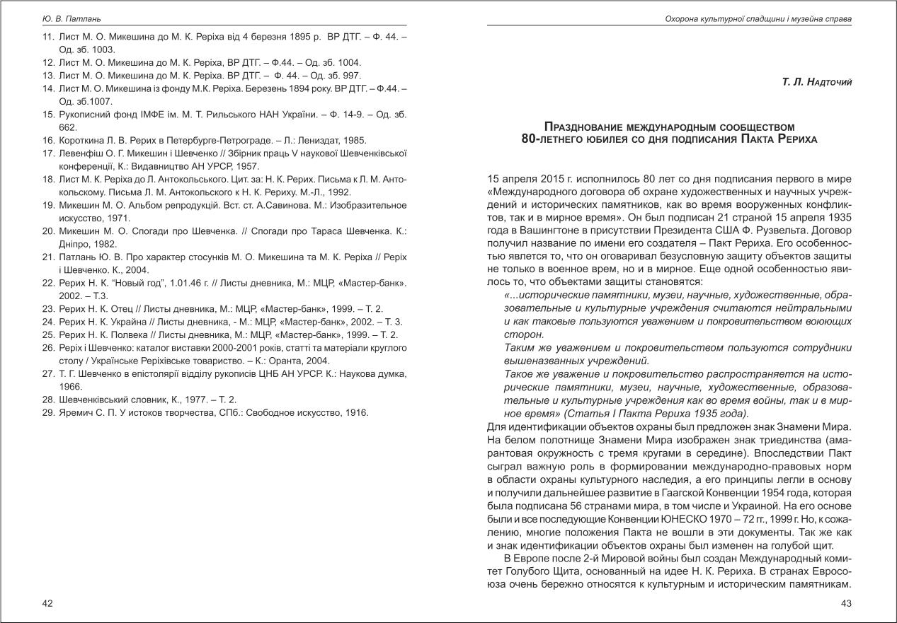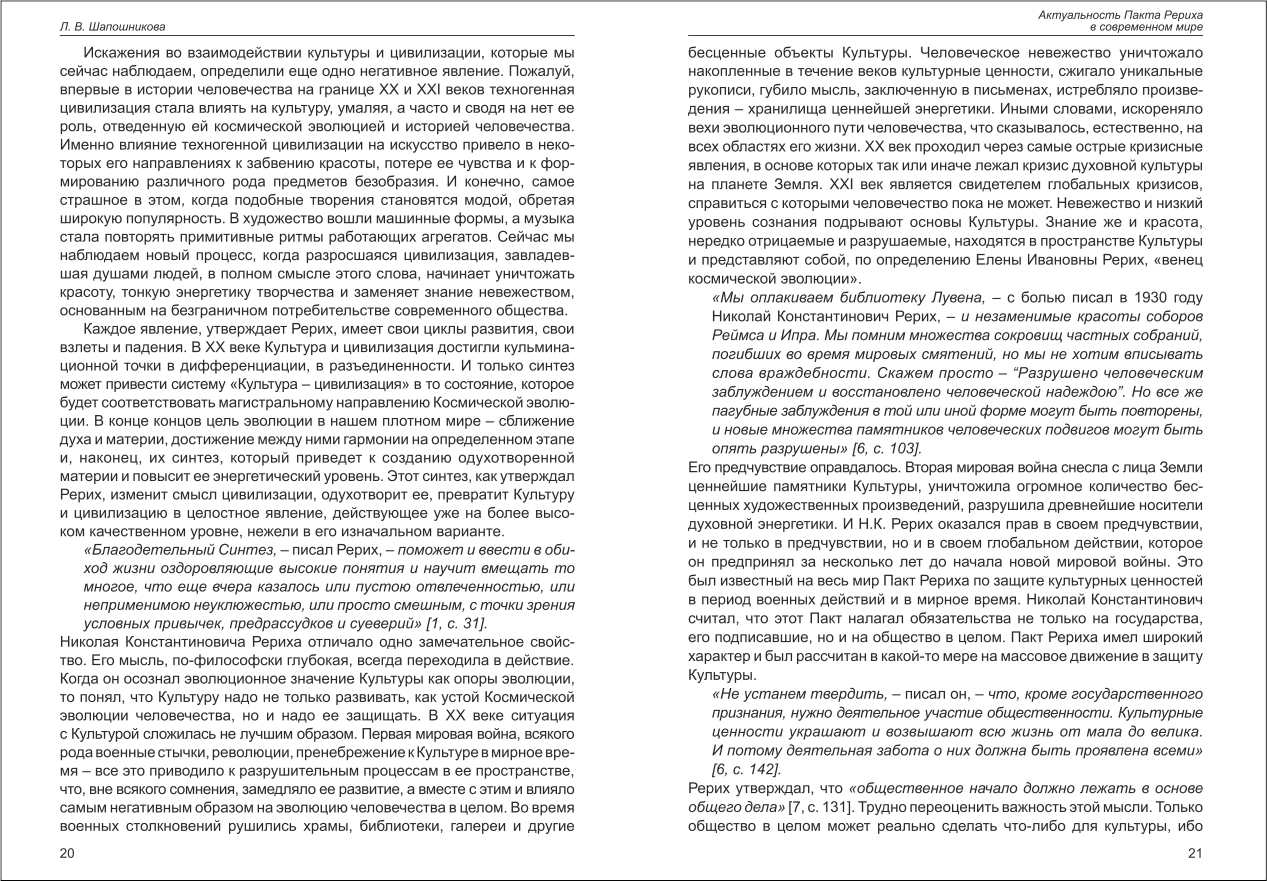 Шапошнікова: Метаисторический смысл Пакта Рериха