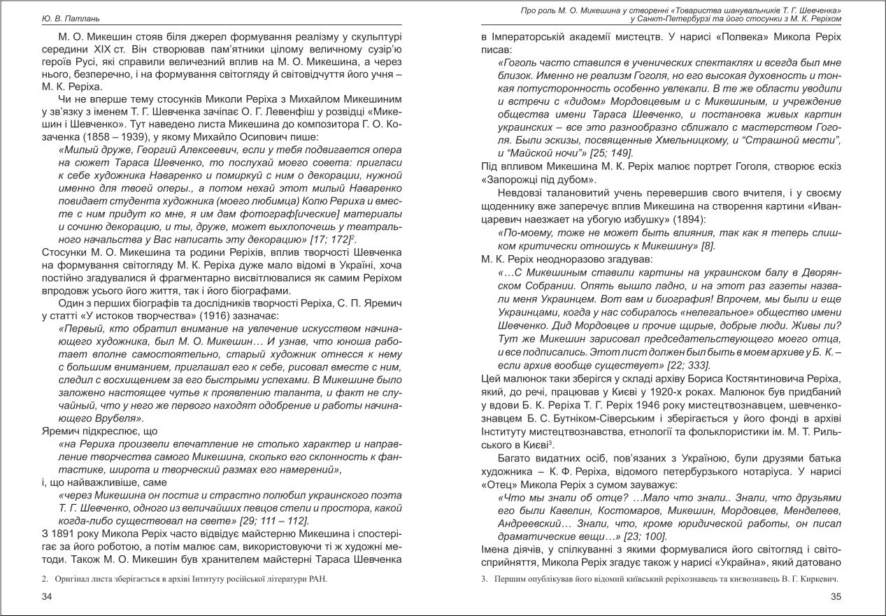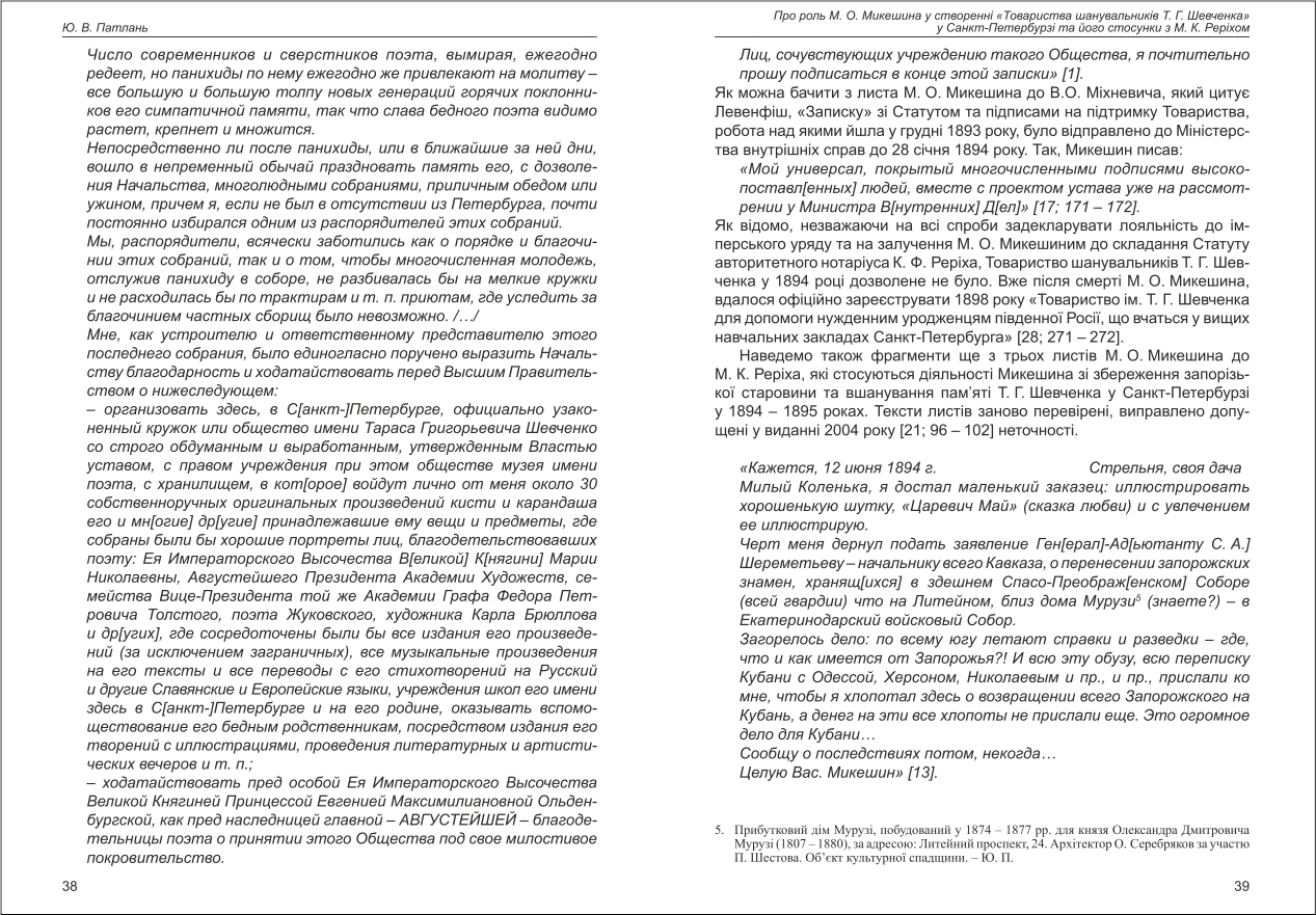 Патлань: Про роль М. О. Микешина у створенні "Товариства шанувальників Т. Г. Шевченка" у ...