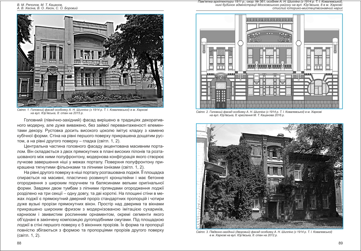 Боровий, Кацанов, Ряполов, Хесін, Хесіна: Пам'ятка архітектури 1911 р., охор. № 361, особняк А. Н. Шиллінг (з 1914 р. Т. І. ...