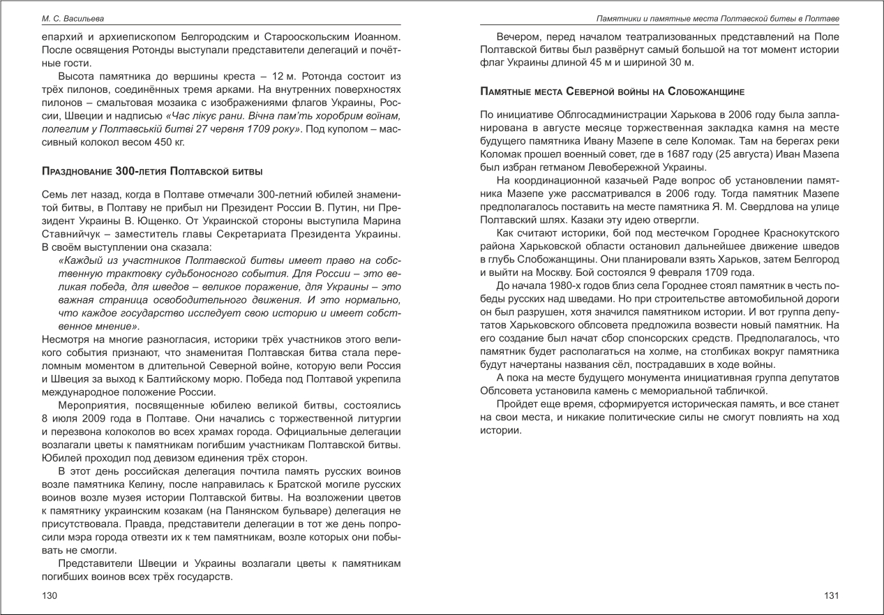 Васильєва: Памятники и памятные места Полтавской битвы в Полтаве