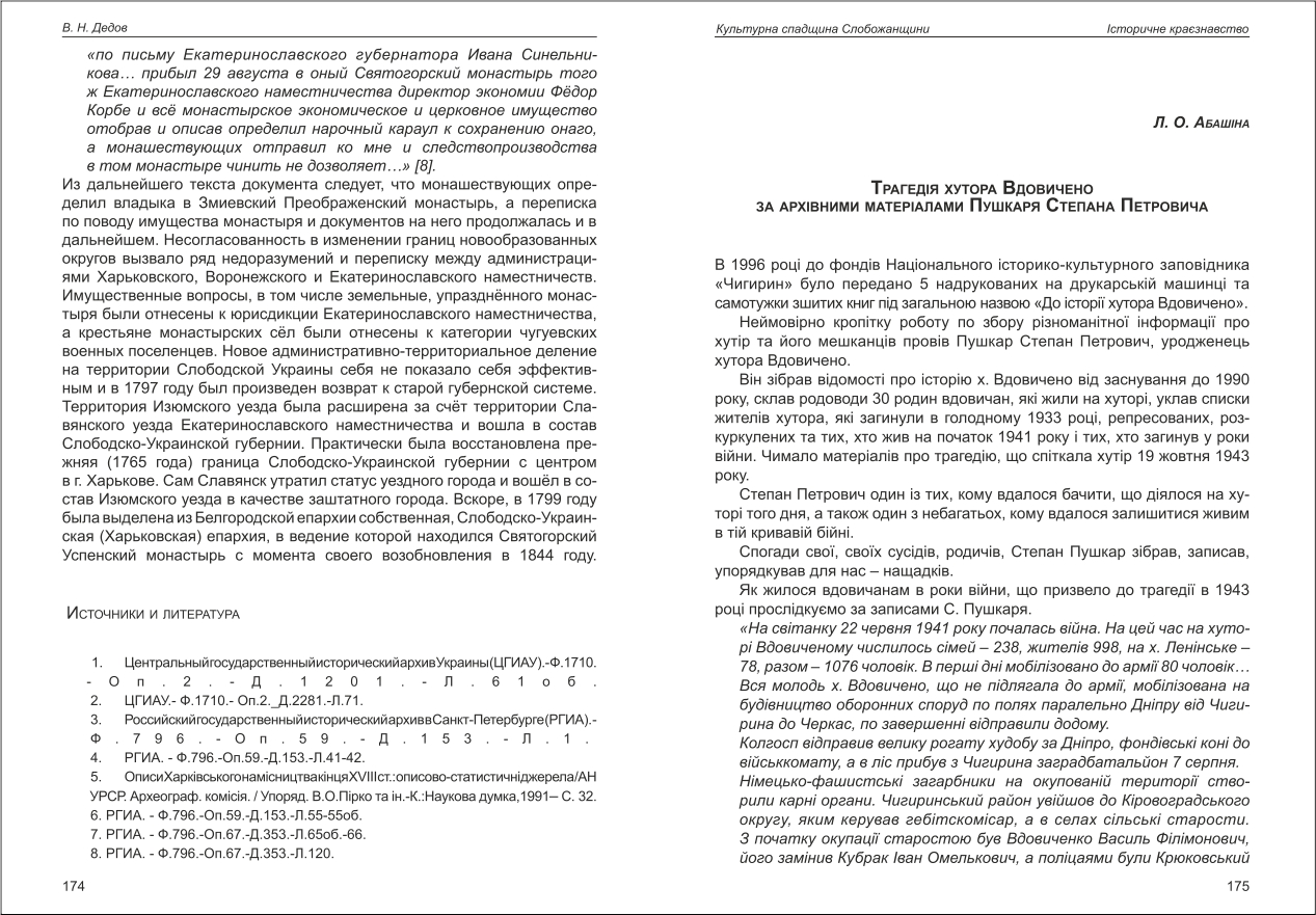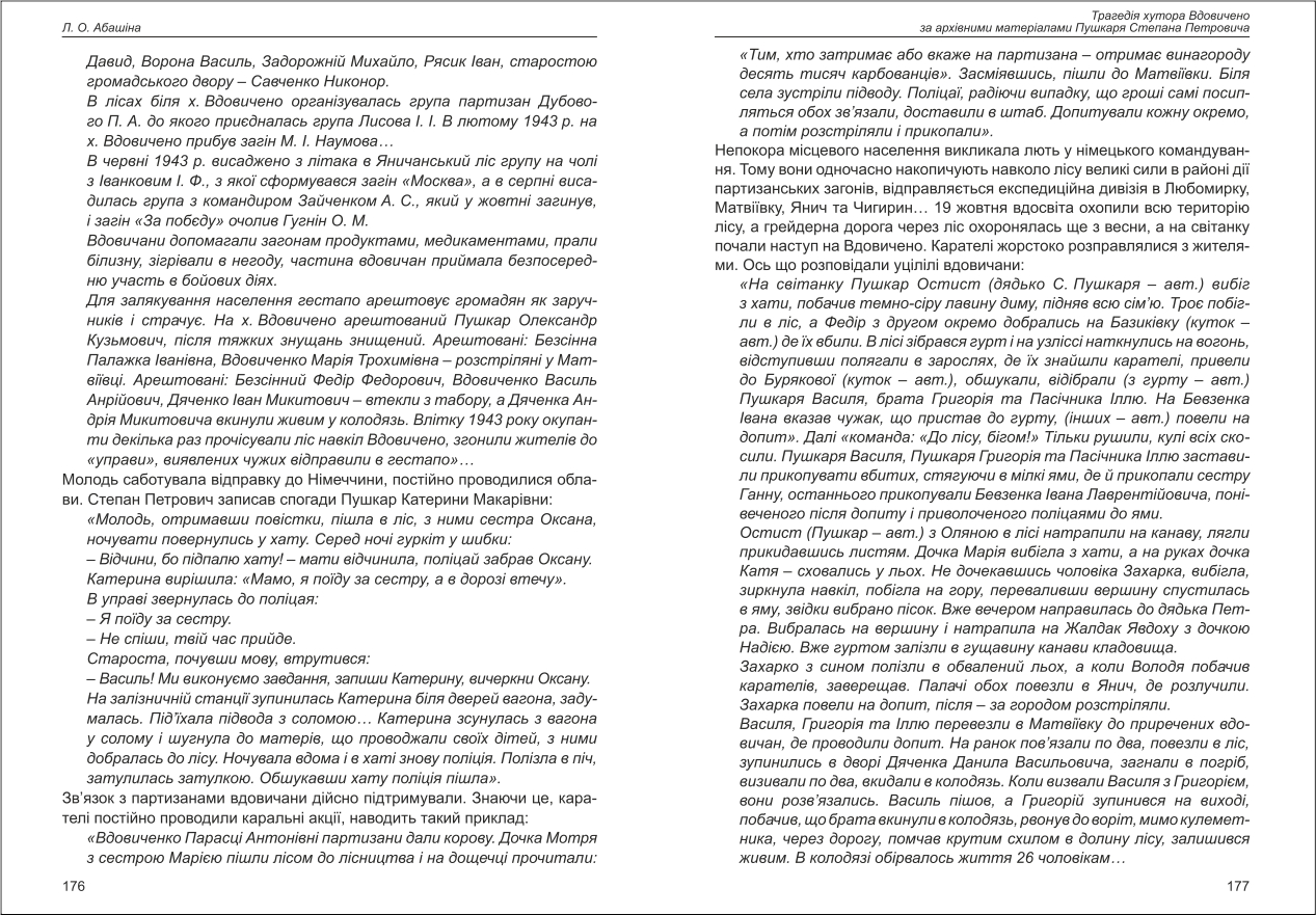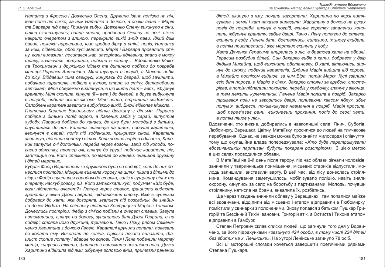 Абашіна: Трагедія хутора Вдовичено за архівними матеріалами Пушкаря Степана Петровича