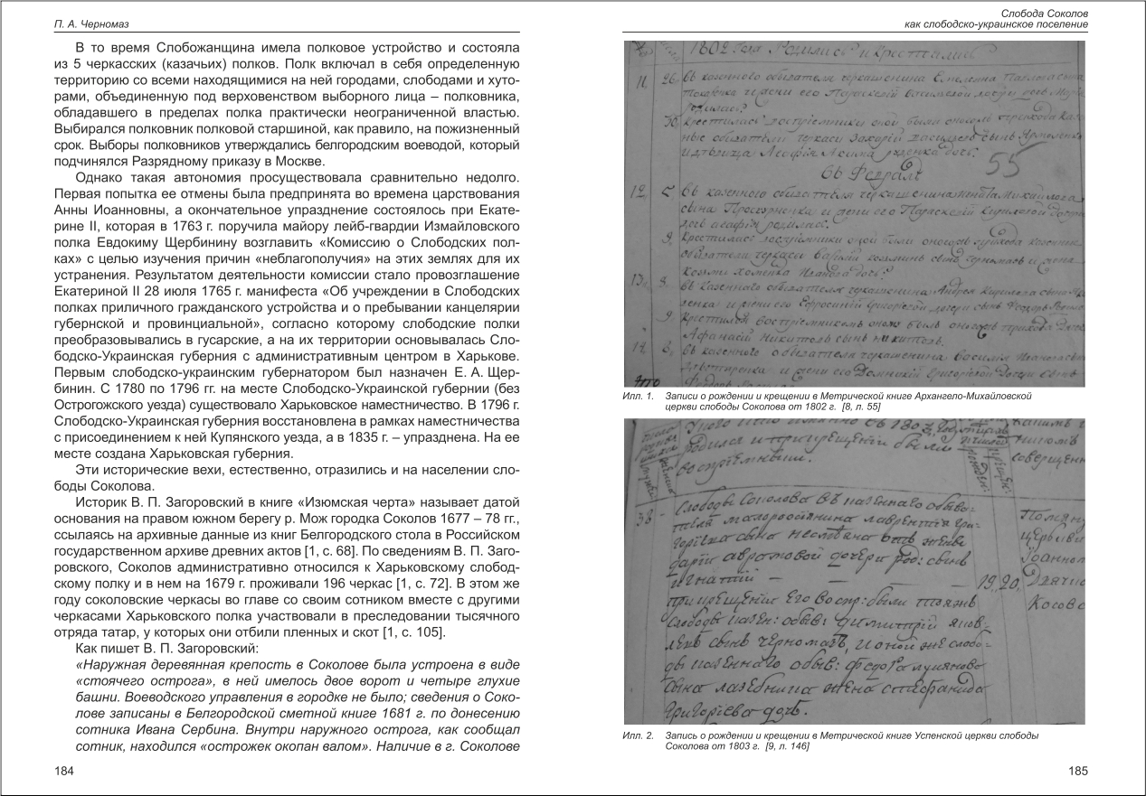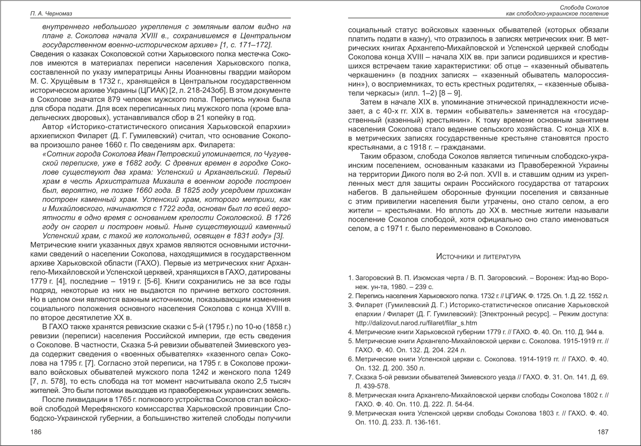 Черномаз: Слобода Соколов как слободско-украинское поселение