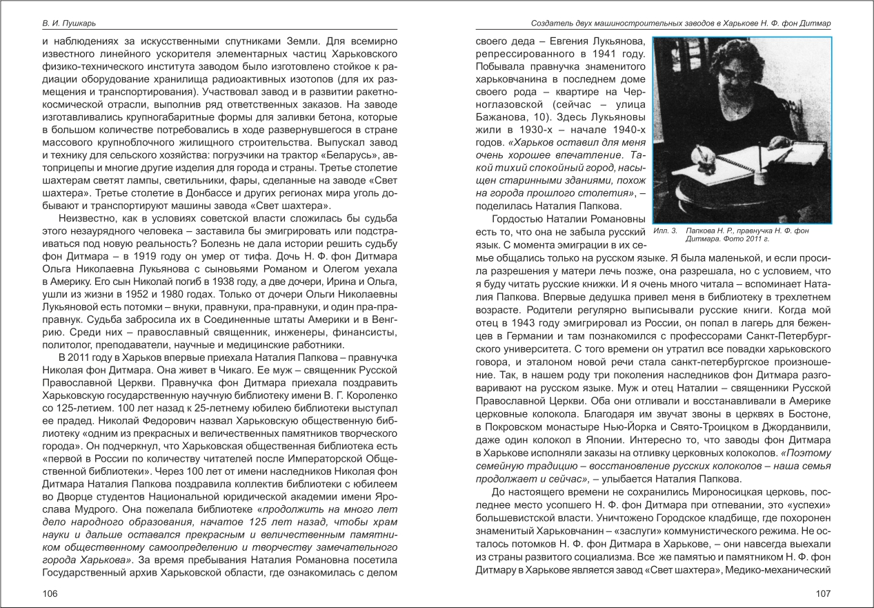 Пушкарь: Создатель двух машиностроительных заводов в Харькове Н. Ф. фон Дитмар
