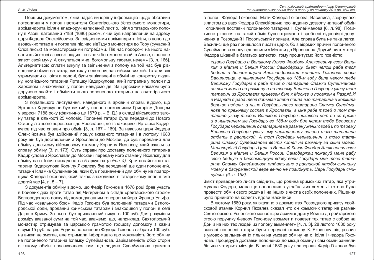Дєдов: Святогірський архімандрит Іоіль Озерянський та питання визволення його з полону на ...
