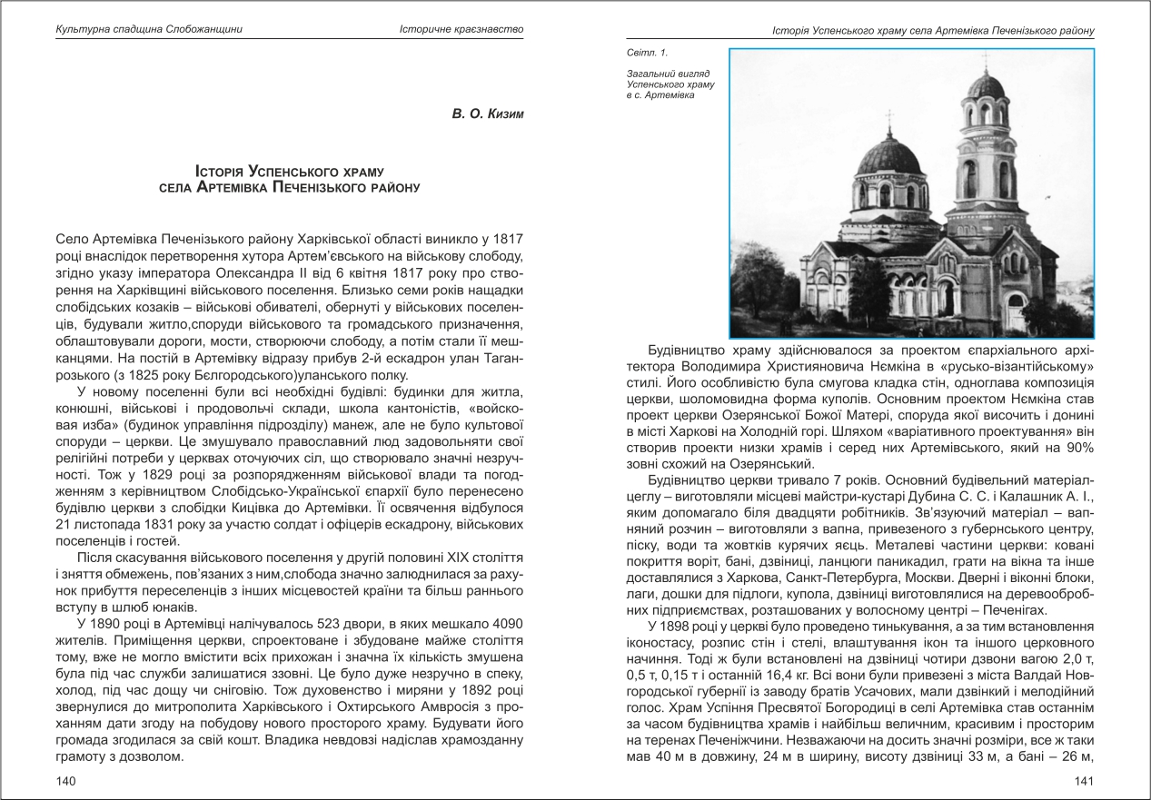 Кизим: Історія Успенського храму села Артемівка Печенізького району