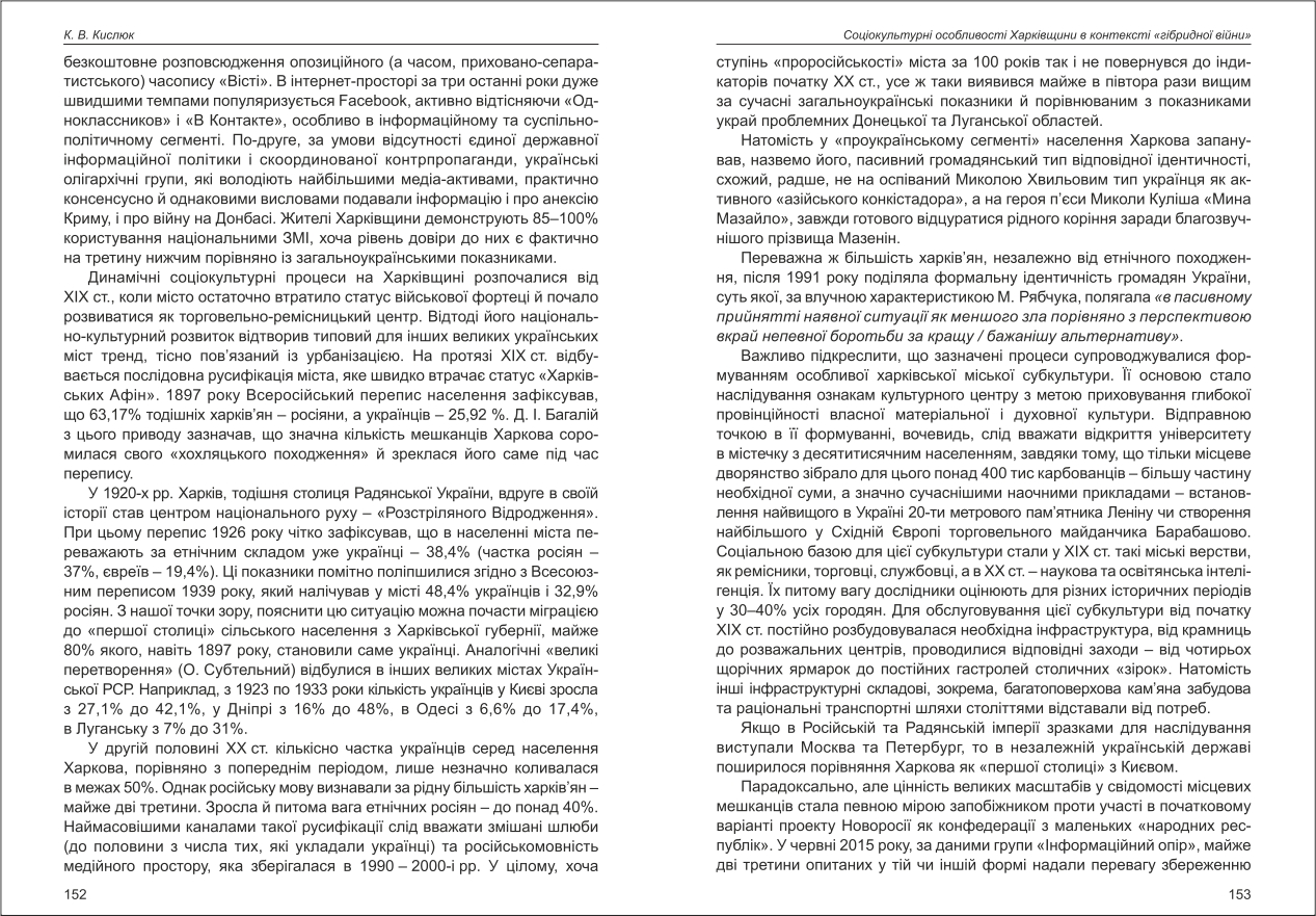 Кислюк: Соціокультурні особливості Харківщини в контексті "гібридної війни"