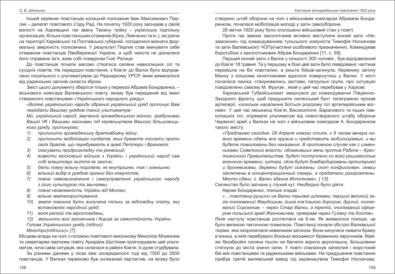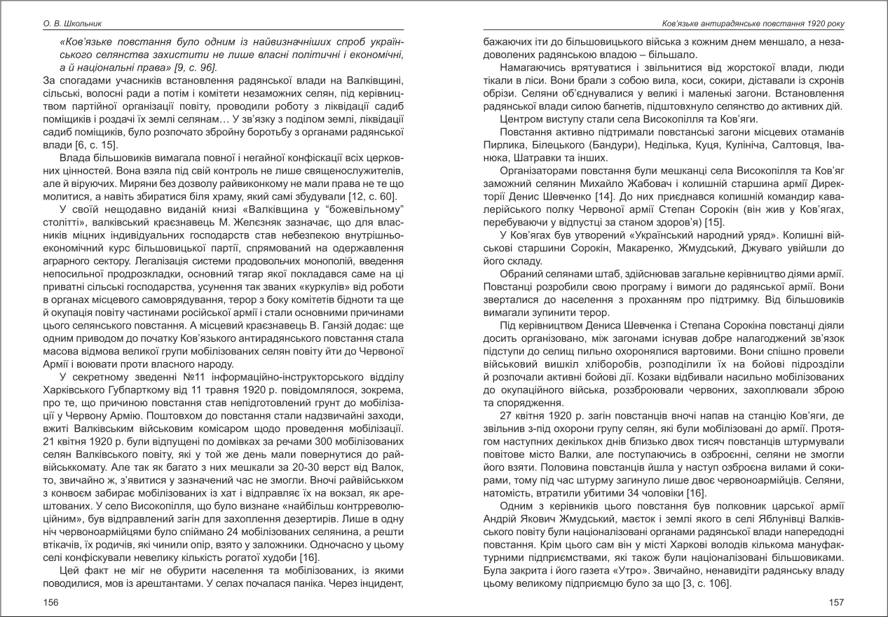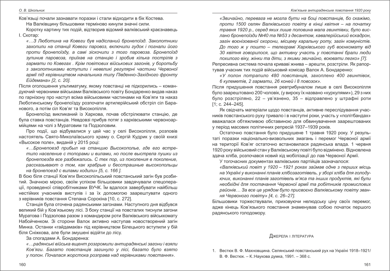 Школьник: Ков'язьке антирадянське повстання 1920 року