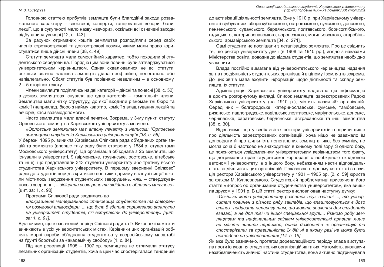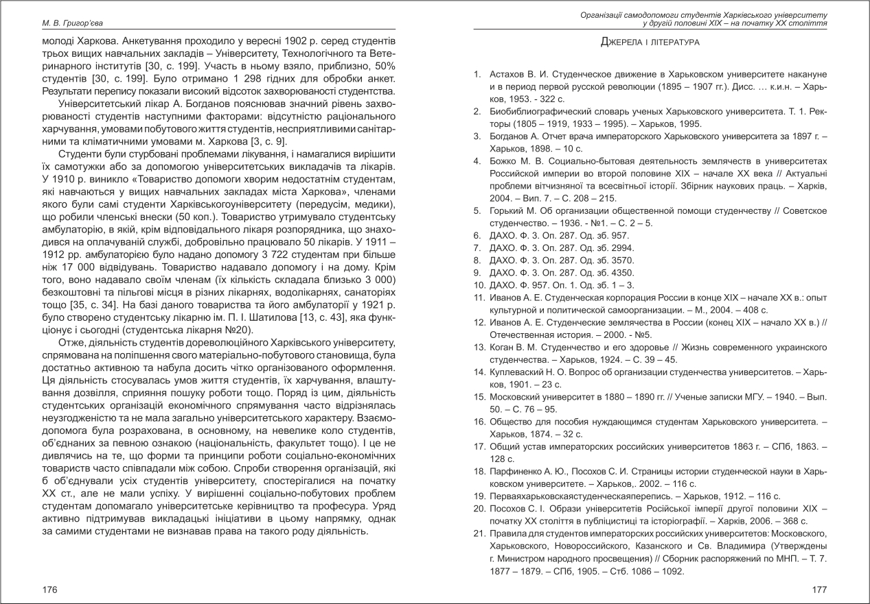 Григор'єва: Організації самодопомоги студентів Харківського університету у другій половині XIX - ...