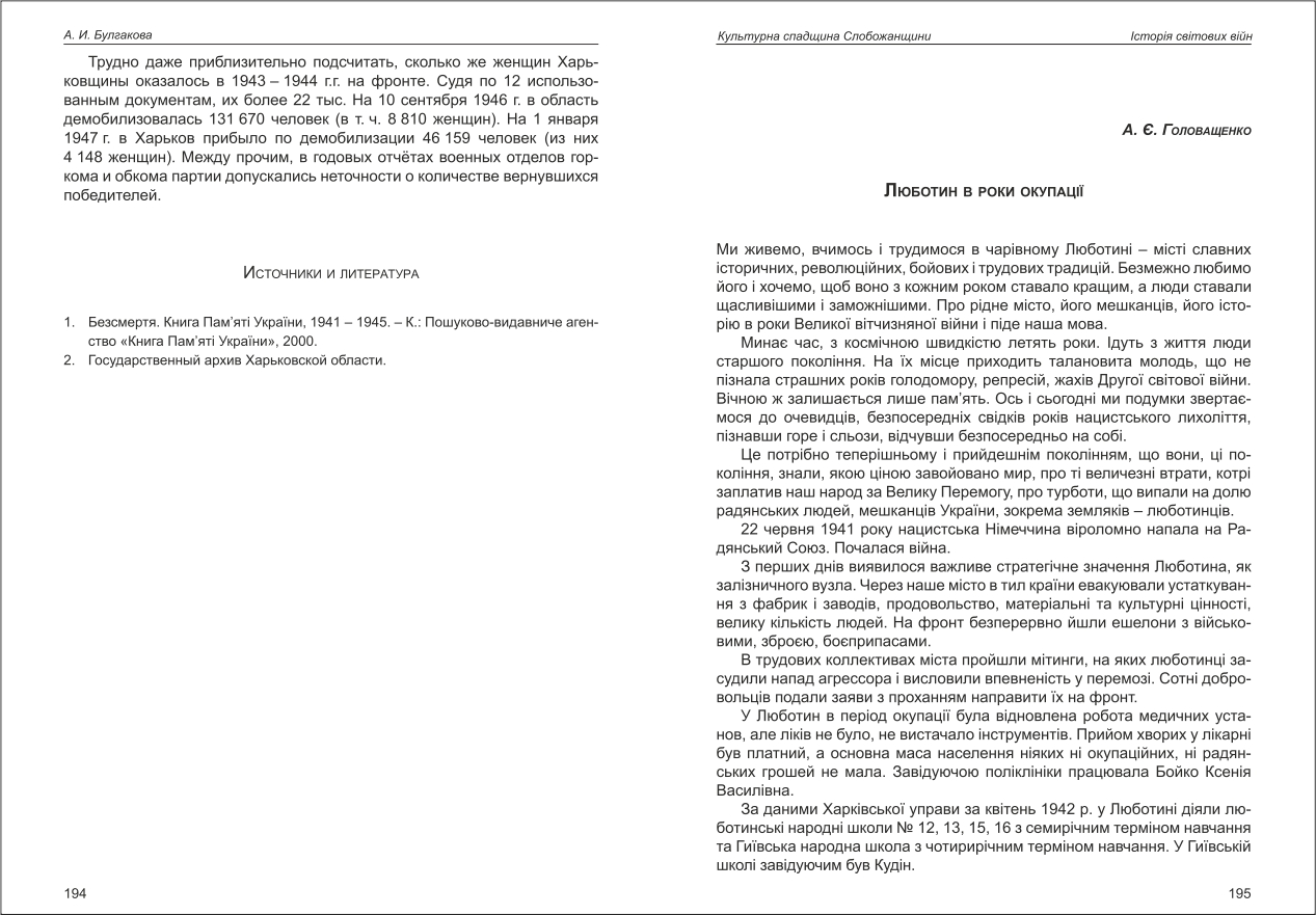 Головащенко: Люботин в роки окупації