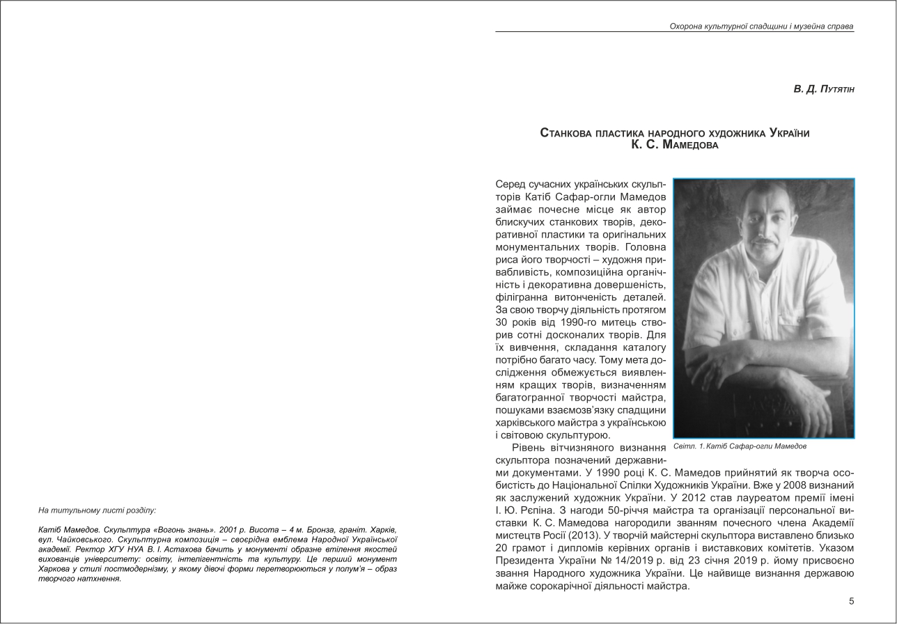 Путятін: Станкова пластика народного художника України К. С. Мамедова