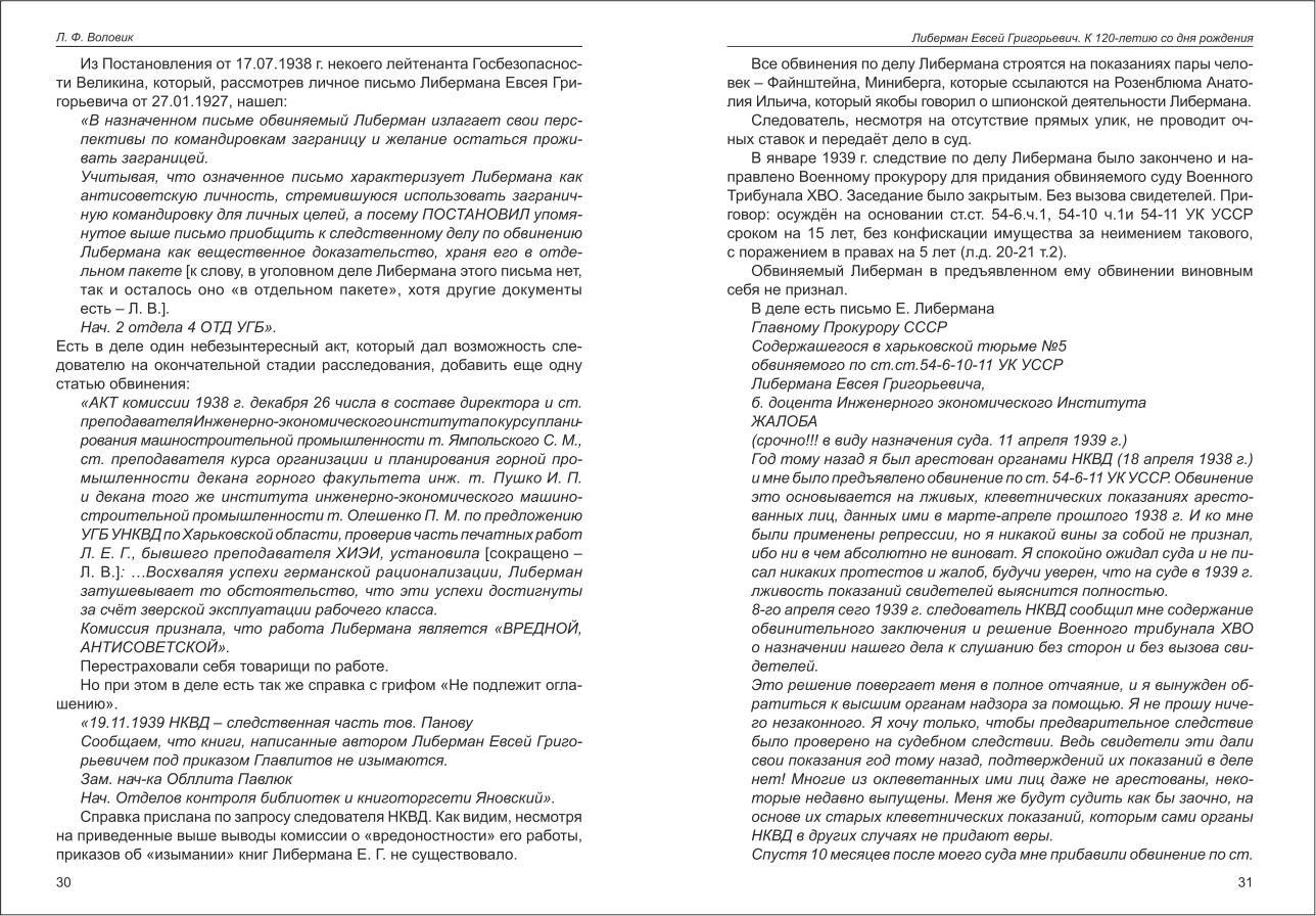 Воловик: Либерман Евсей Григорьевич. К 120-летию со дня рождения