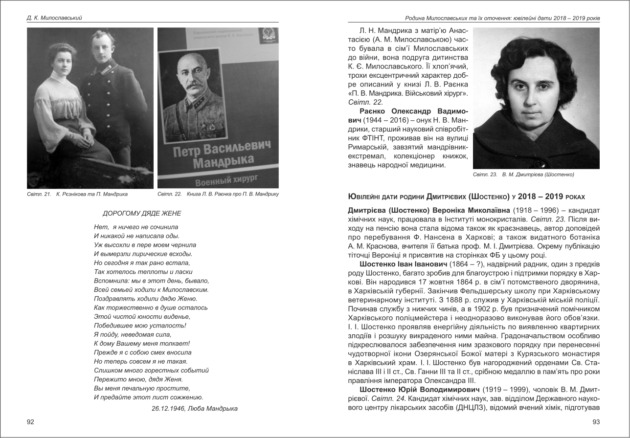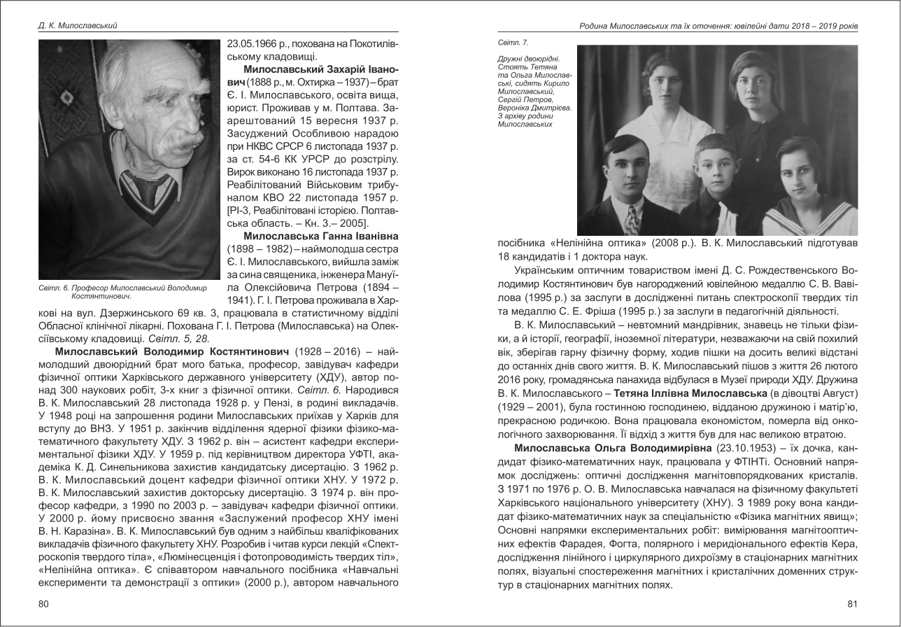 Милославський: Родина Милославських та їх оточення: ювілейні дати 2018-2019 років