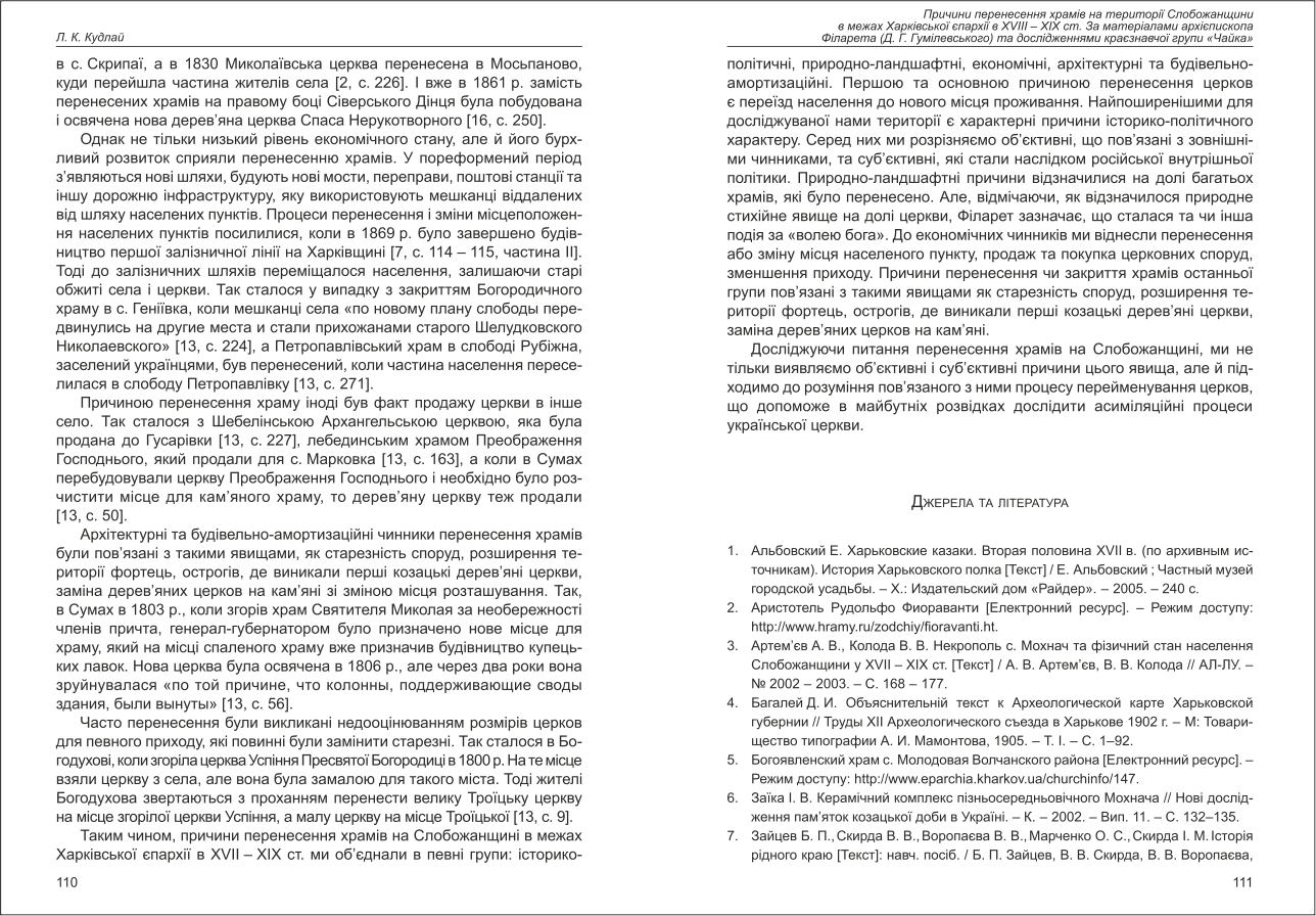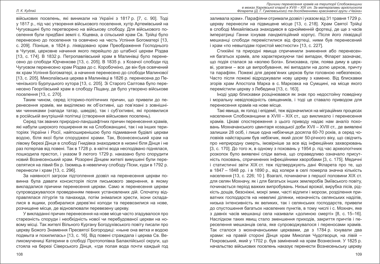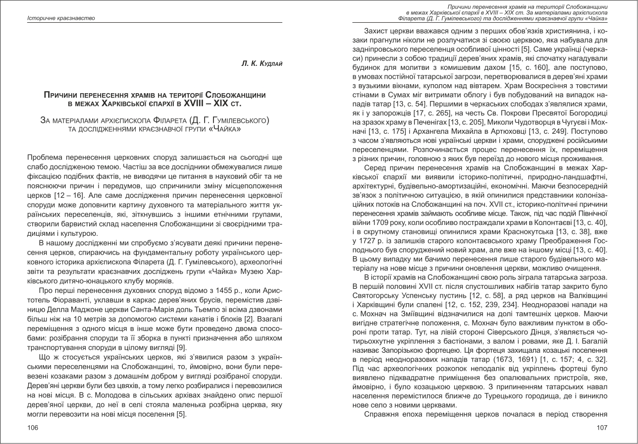 Кудлай: Причина перенесення храмів на території Слобожанщини в межах Харківської єпархії в XVIII ...