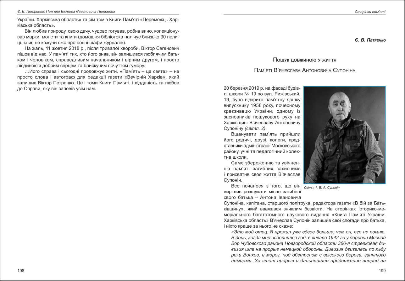 Петренко: Пошук довжиною у життя. Пам'яті В'ячеслава Антоновича Супоніна