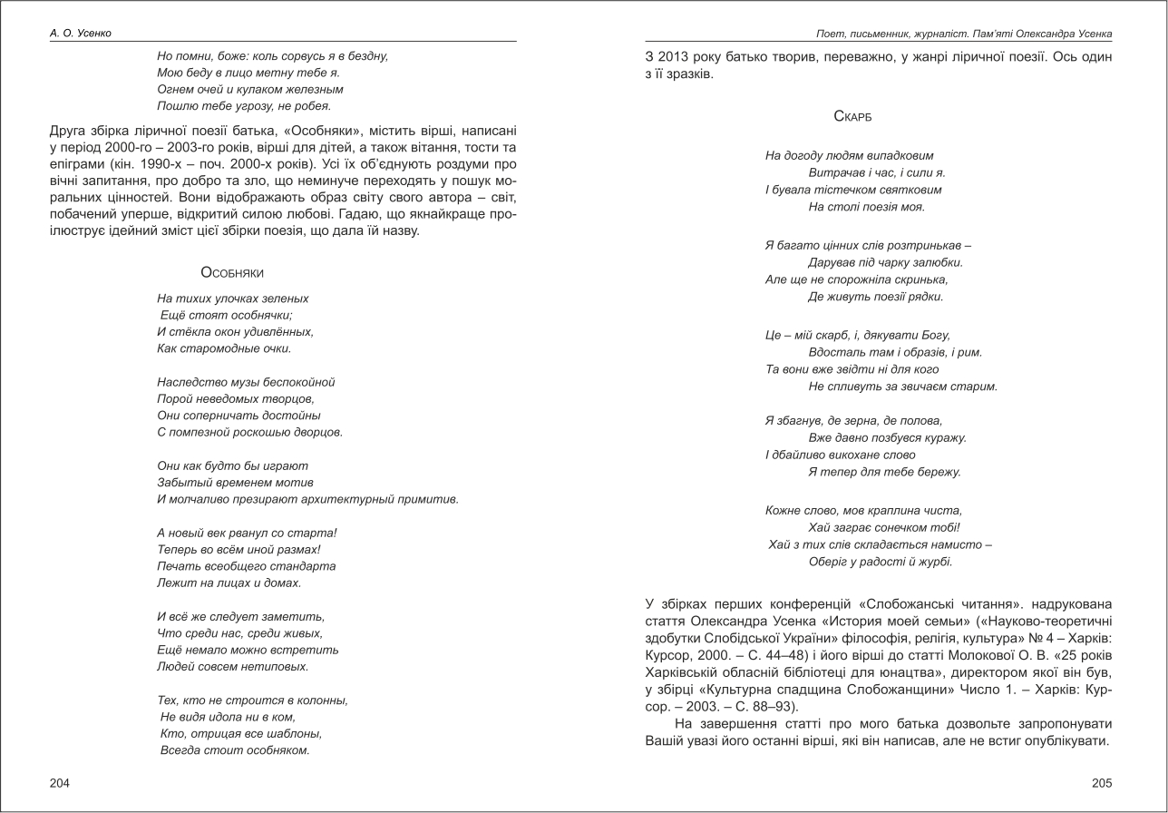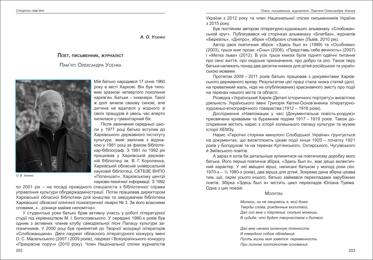 Усенко: Поет, письменник, журналіст. Пам'яті Олександра Усенка