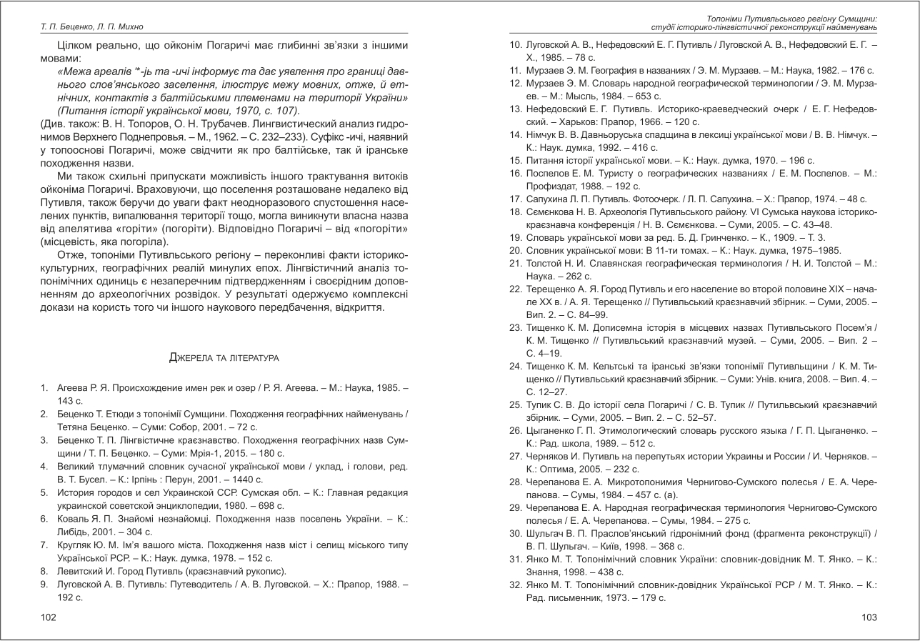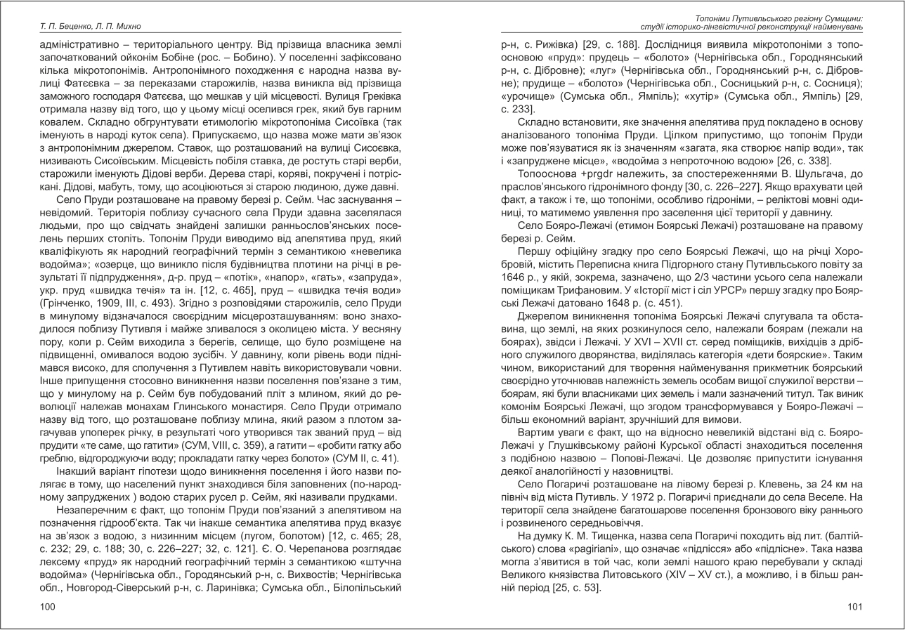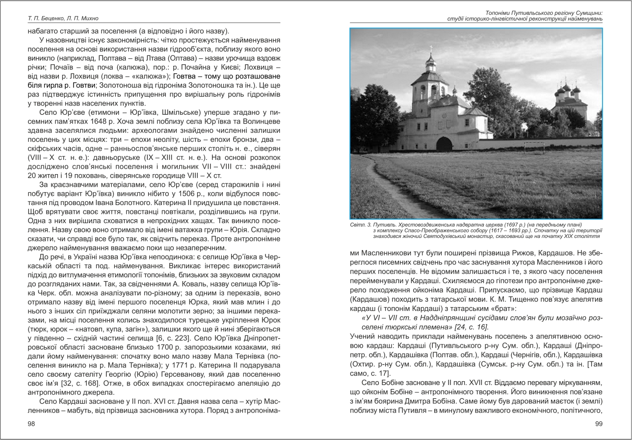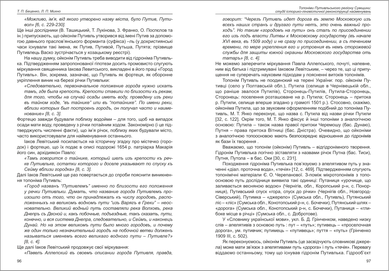 Беценко, Михно: Топоніми Путивльського регіону Сумщини: студії історико-лінгвістичної реконструкції ...