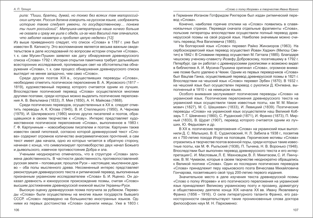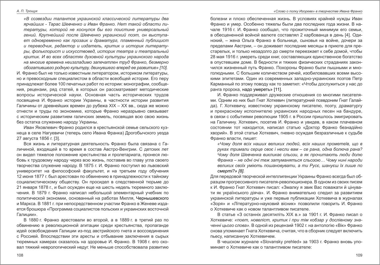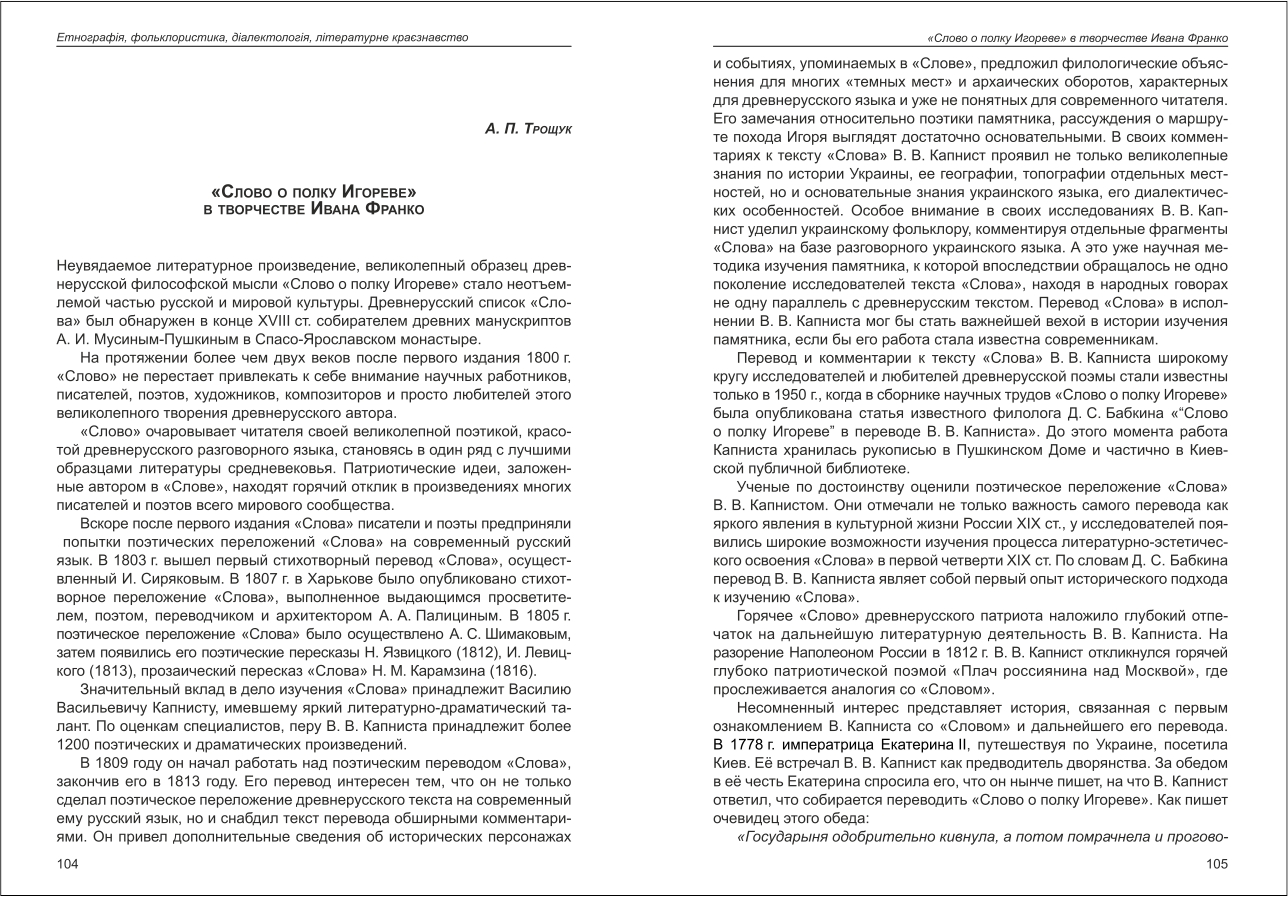 Трощук: «Слово о полку Игореве» в творчестве Ивана Франко