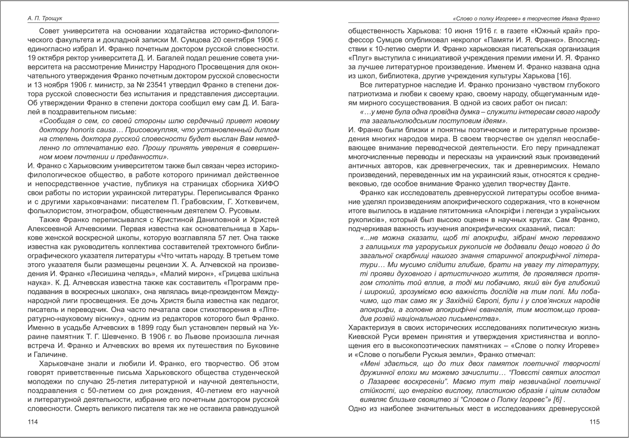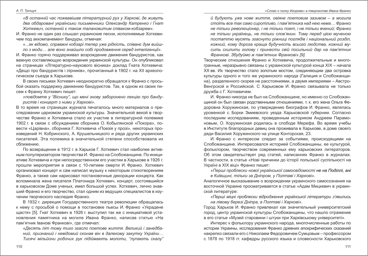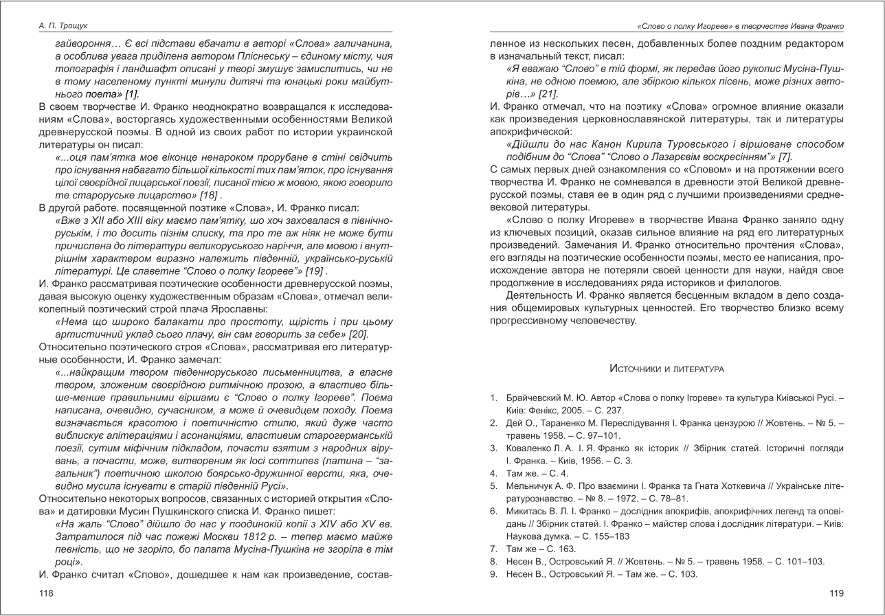Трощук: «Слово о полку Игореве» в творчестве Ивана Франко