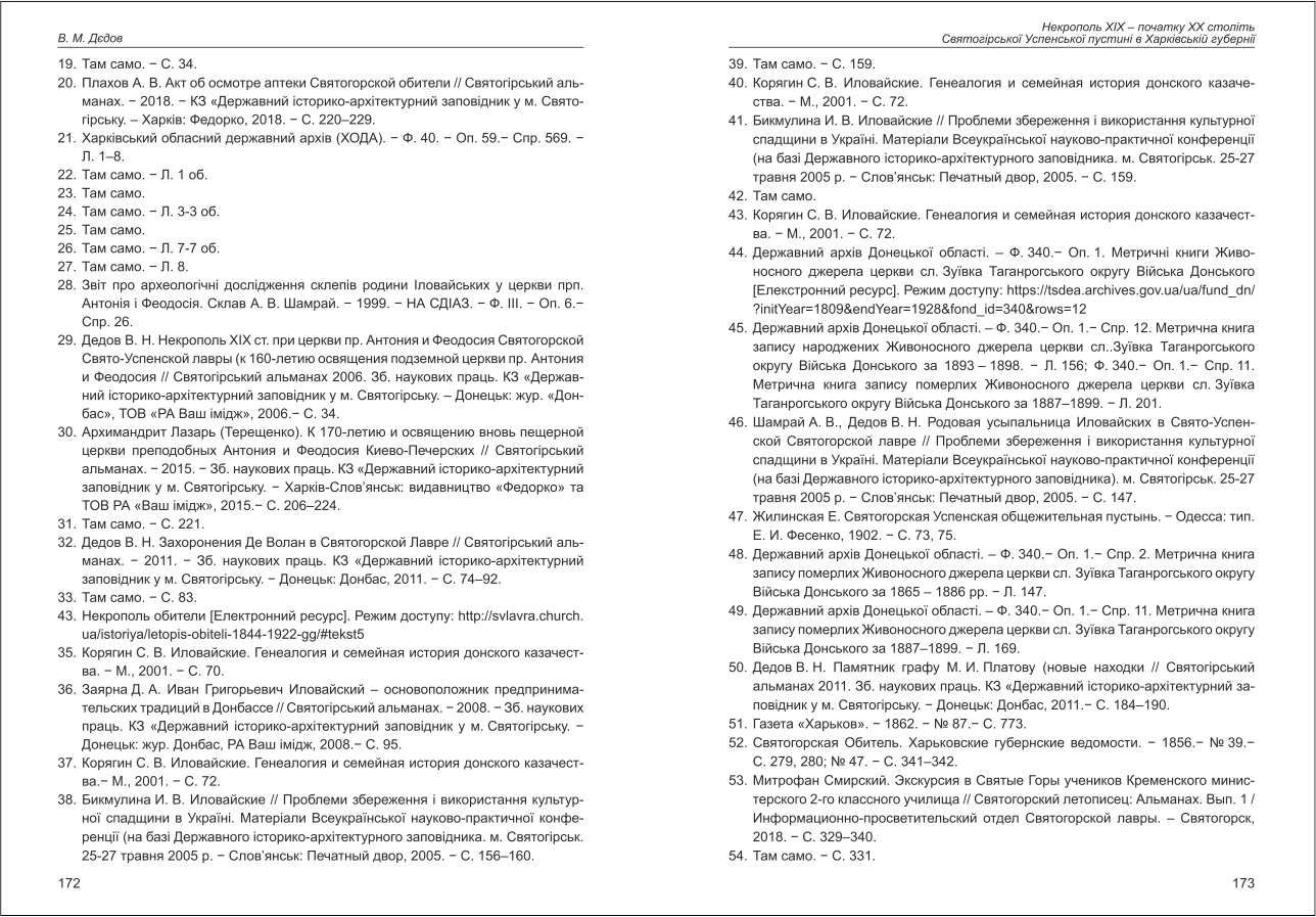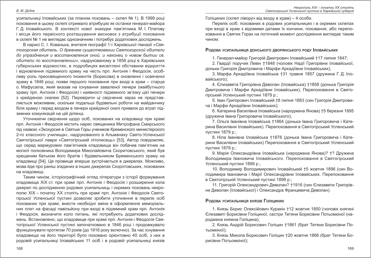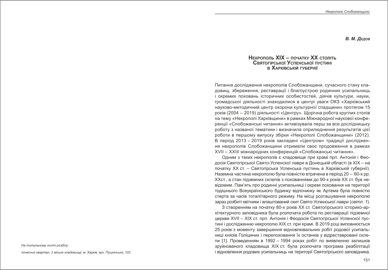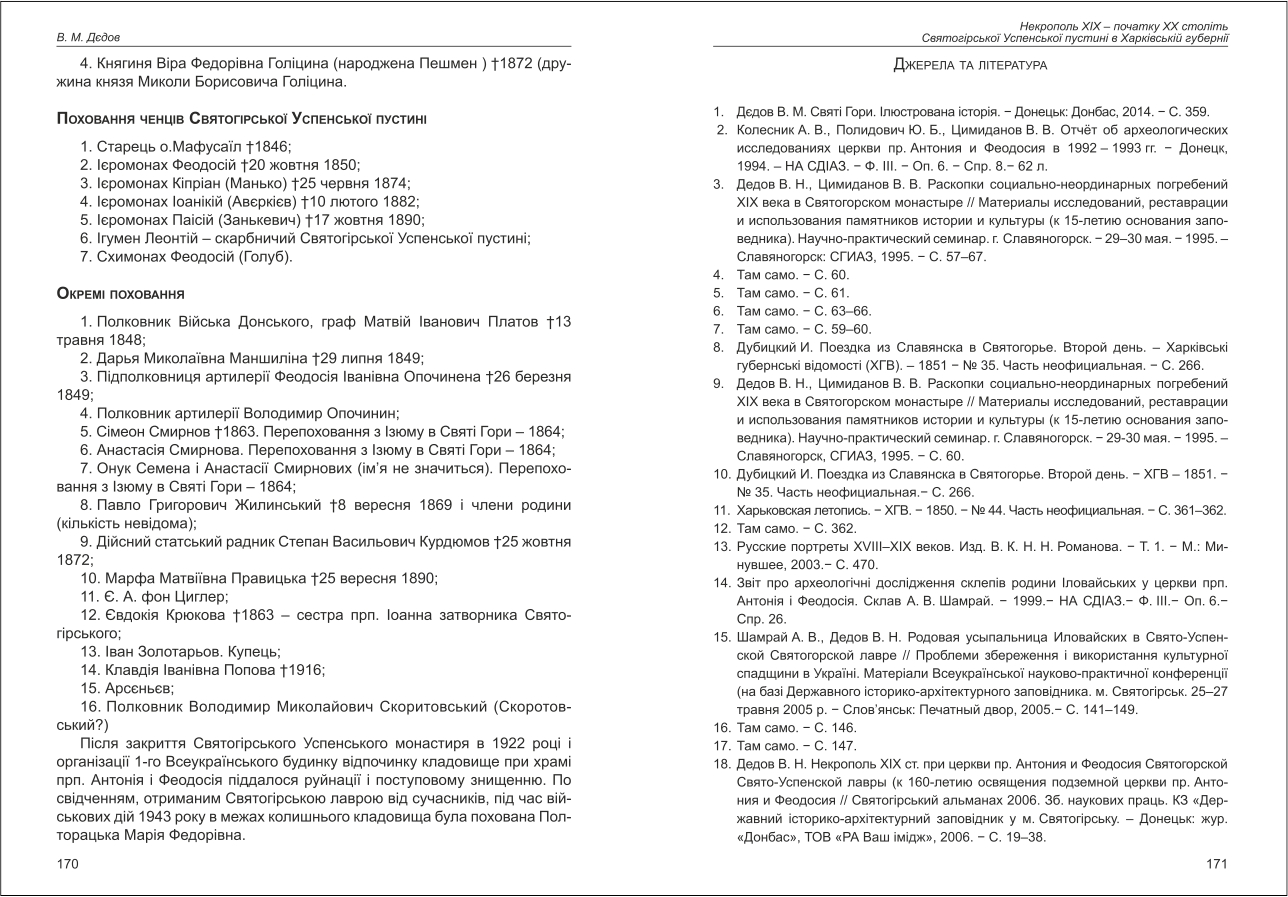 Дєдов: Некрополь ХІХ - початку ХХ століть Святогірської Успенської пустині в Харківській