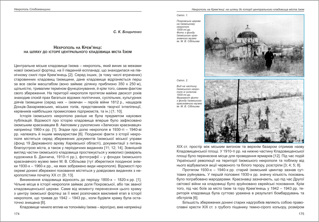 Бондаренко: Некрополь на Крем'янці: на шляху до історії центрального кладовища міста Ізюм