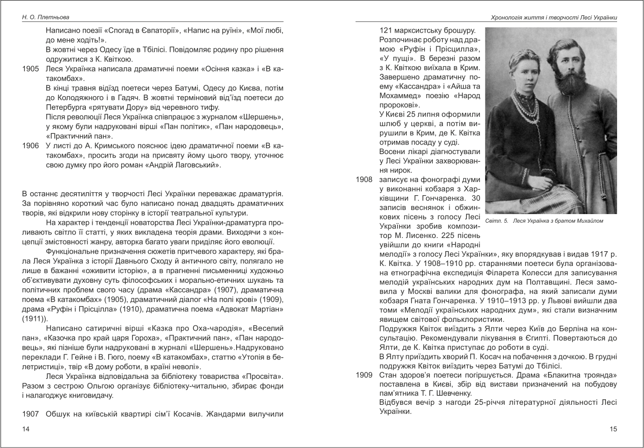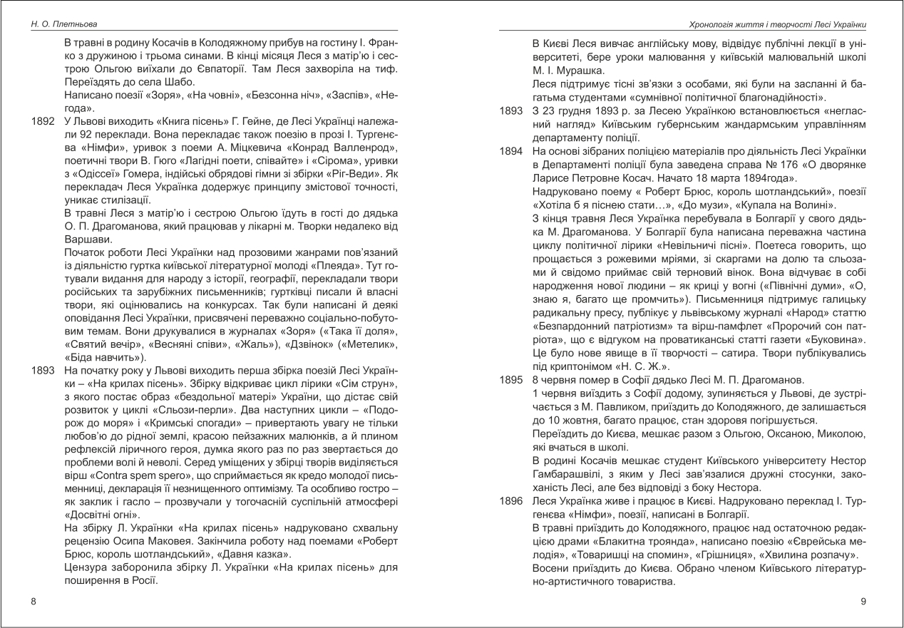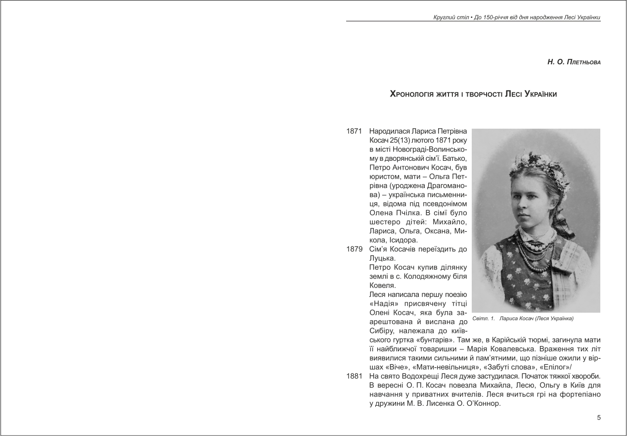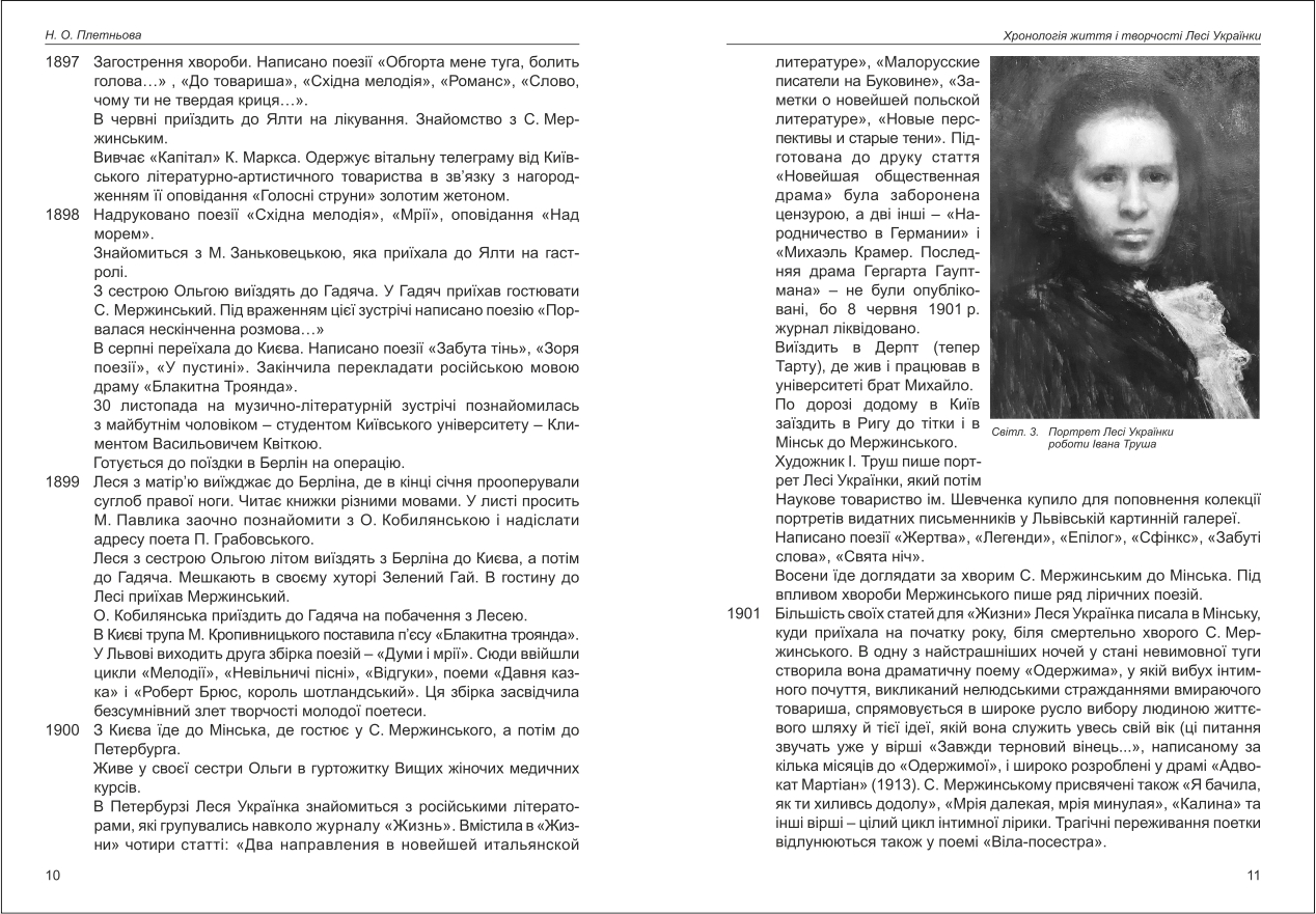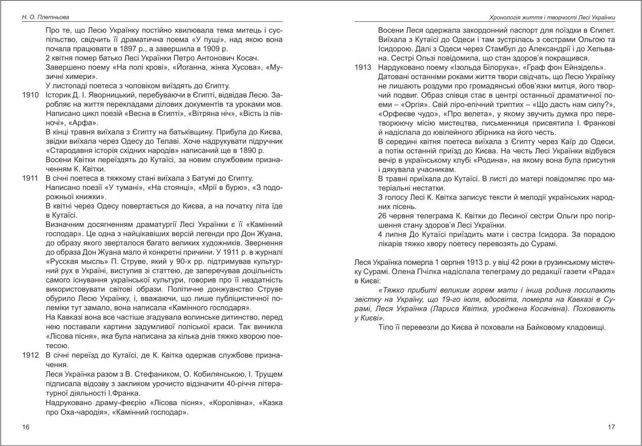 Плетньова: Хронологія життя і творчості Лесі Українки