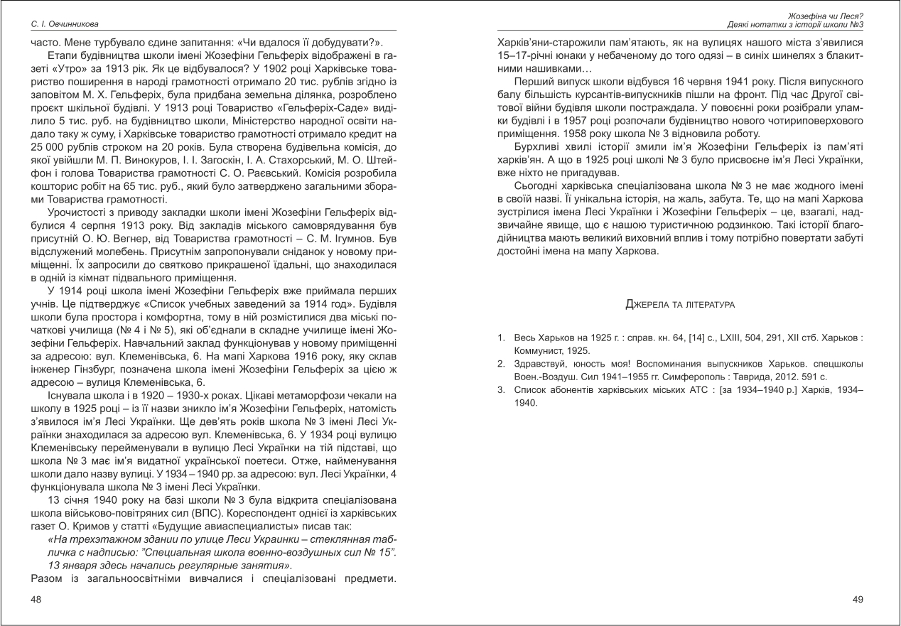 Овчинникова: Жозефіна чи Леся? Деякі нотатки з історії школи №3