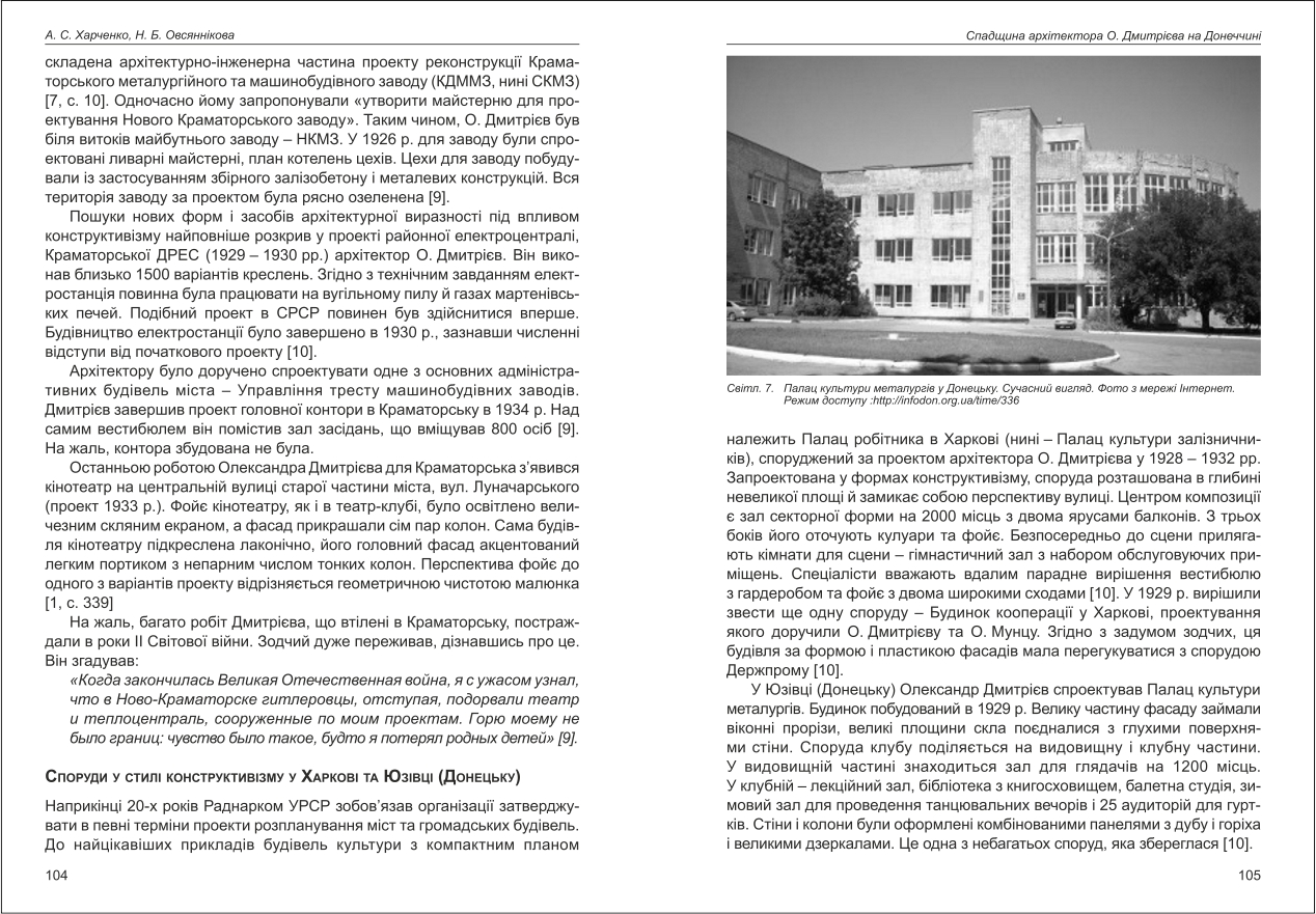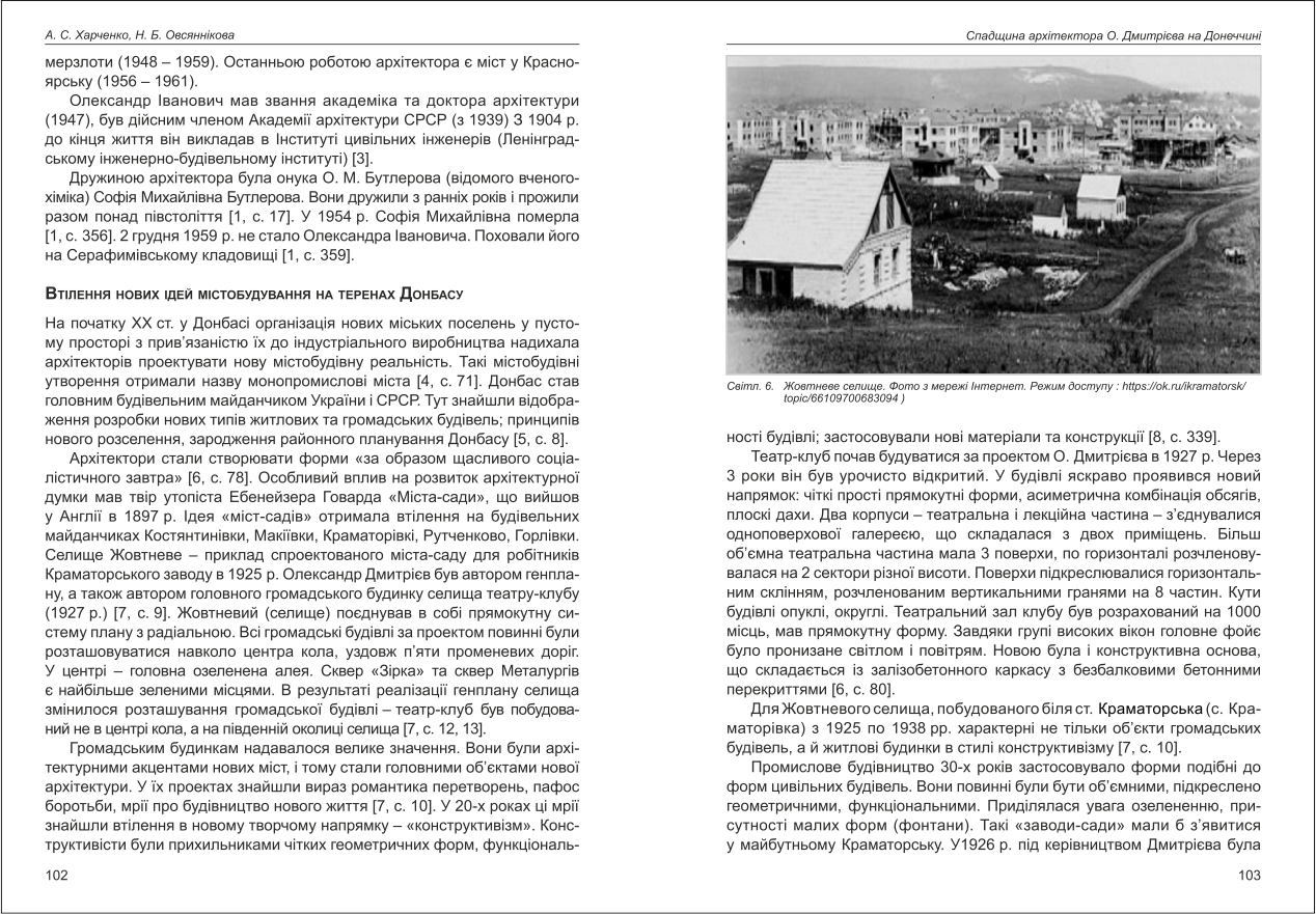 Овсяннікова, Харченко: Спадщина архітектора О. Дмитрієва на Донеччині