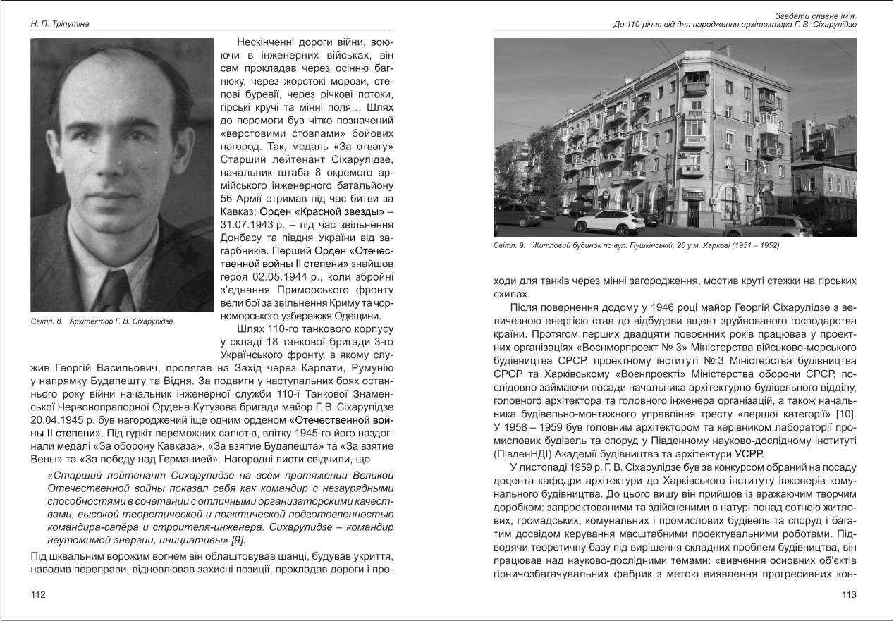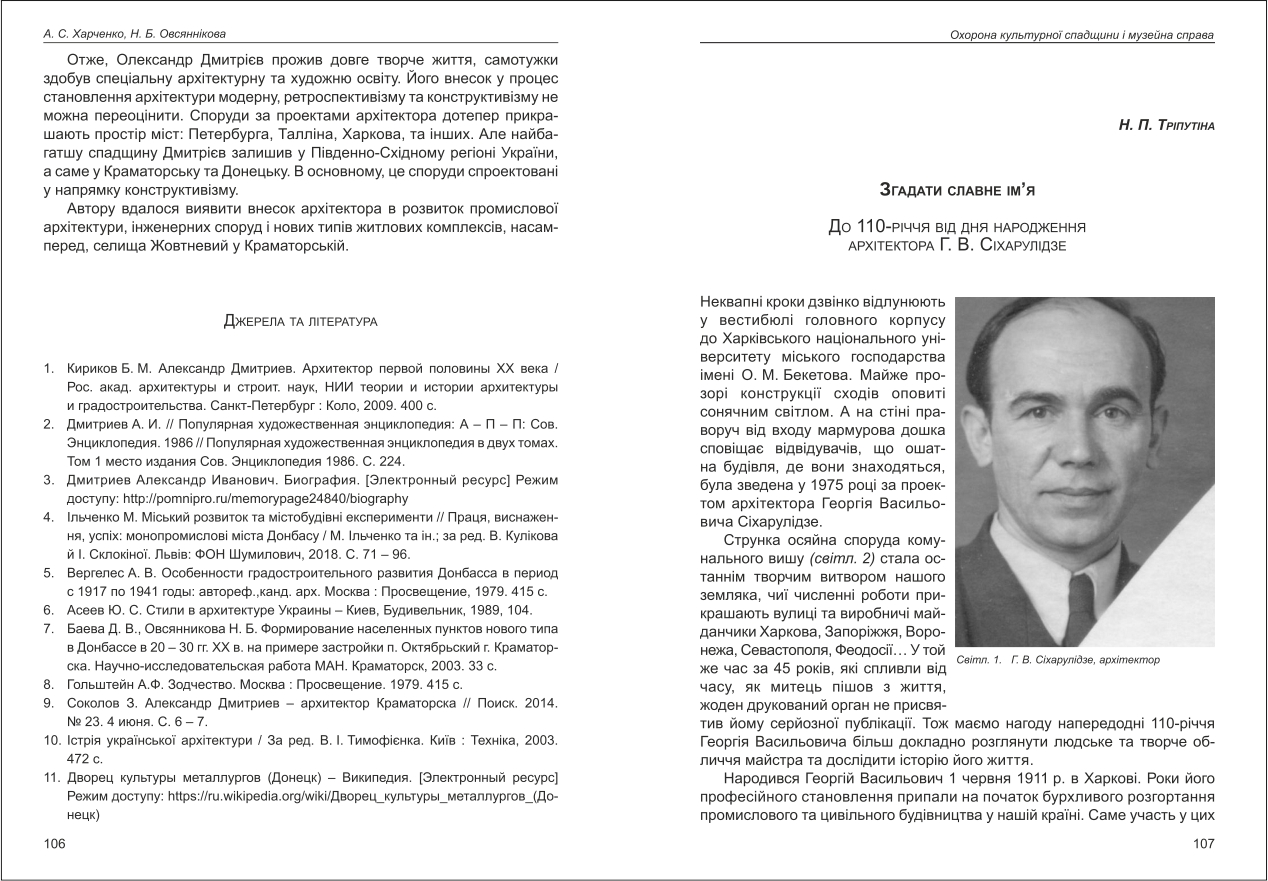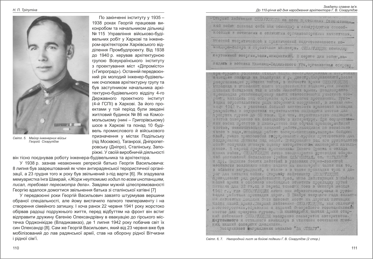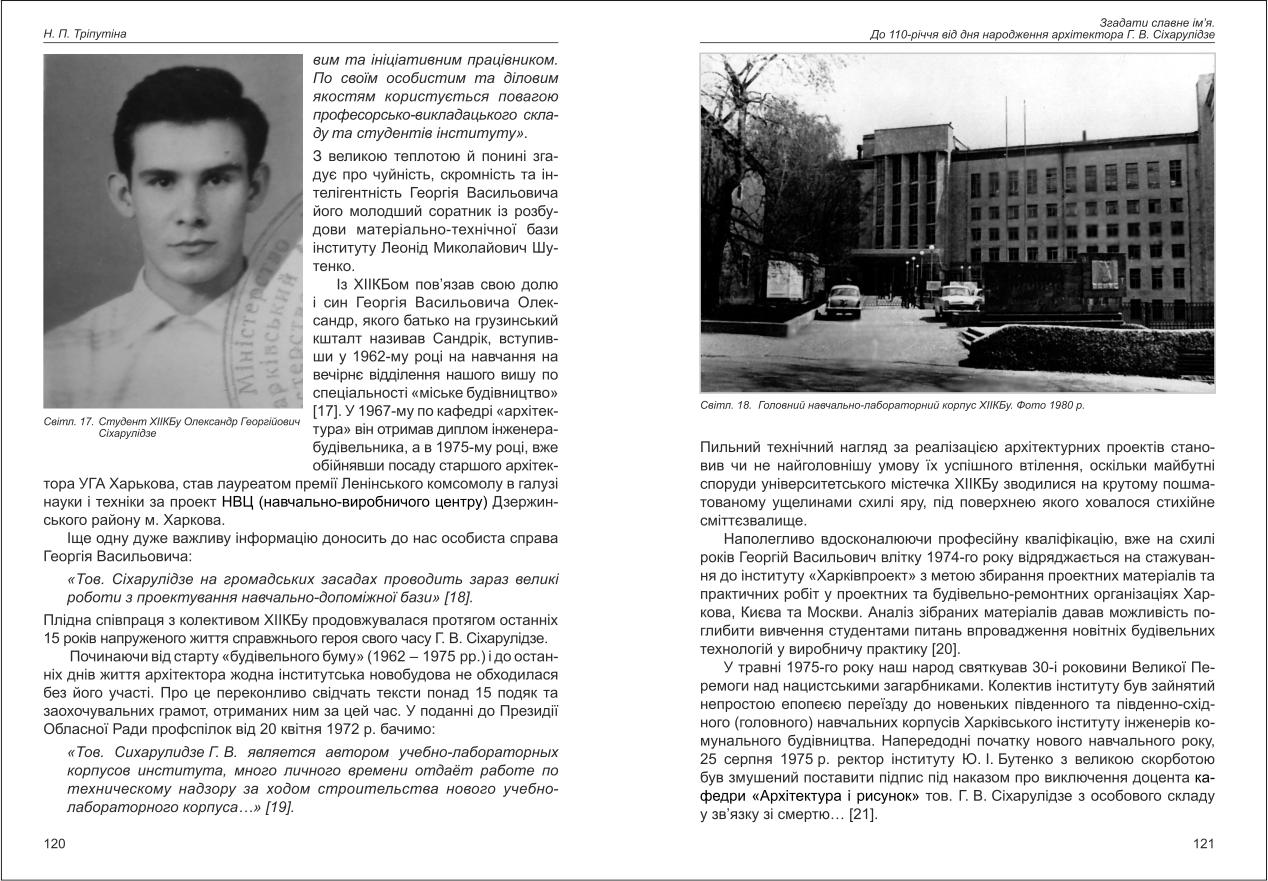 Тріпутіна: Згадати славне ім'я. До 110-річчя від дня народження архітектора Г. В. Сіхарулідзе