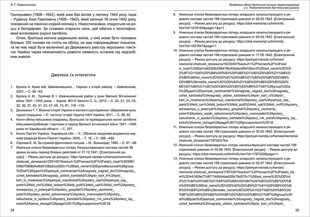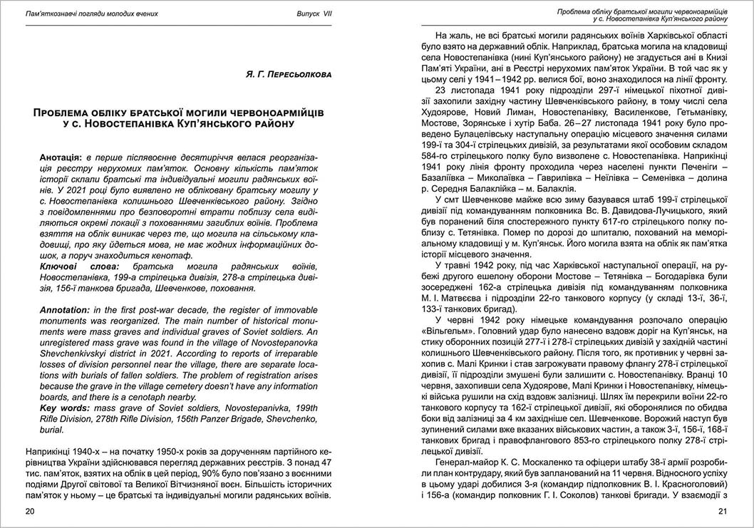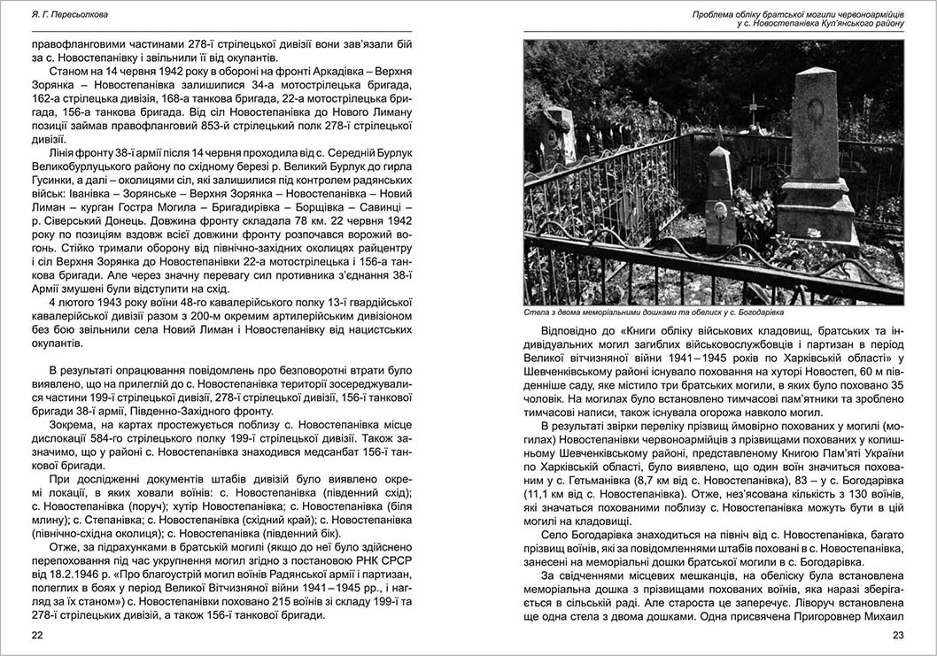 Пересьолкова Я. Г. Проблема обліку братської могили червоноармійців у с. Новостепанівка Куп'янського району