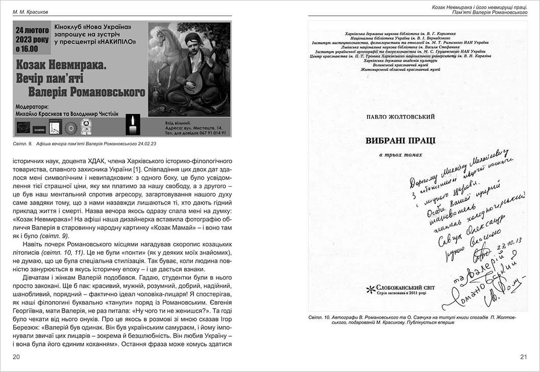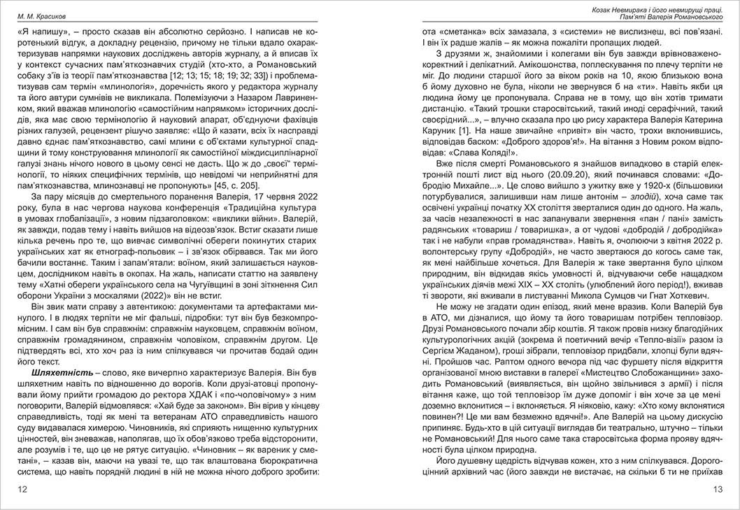 Красіков: Козак Невмирака і його невмирущі праці. Пам'яті Валерія Романовського
