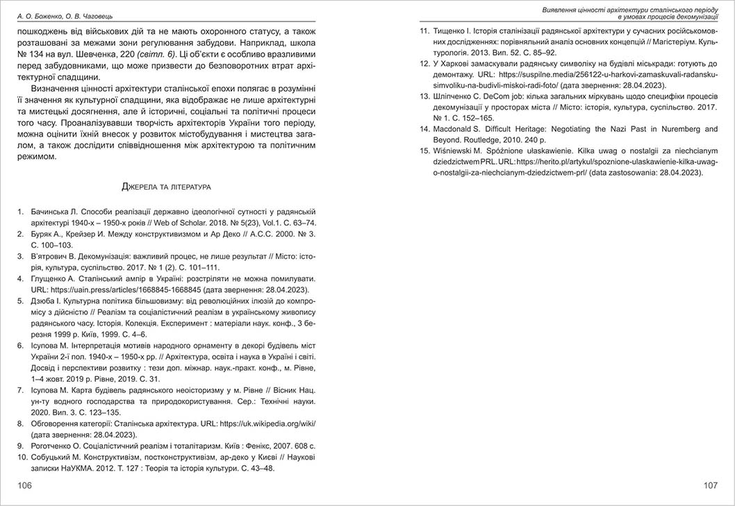 Боженко, Чаговець: Виявлення цінності архітектури сталінського періоду в умовах процесів декомунізації