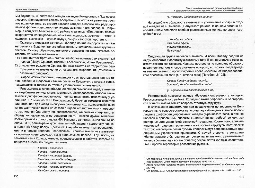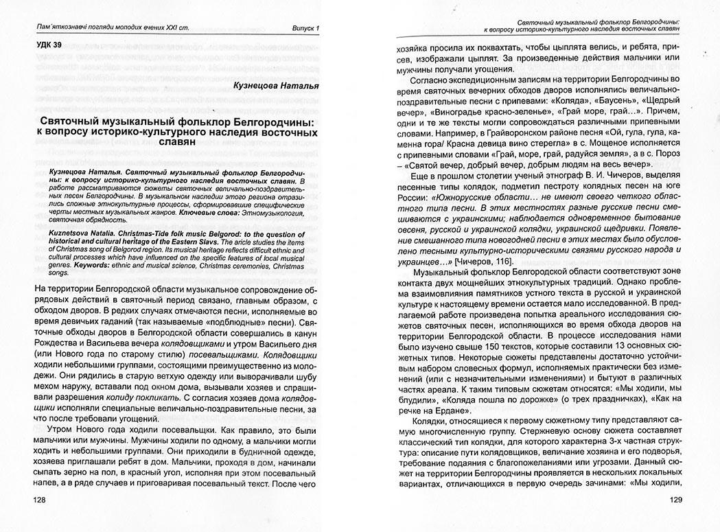 Кузнєцова Н. С. Святочный музыкальный фольклор Белгородчины: к вопросу историко-культурного наследия восточных славян