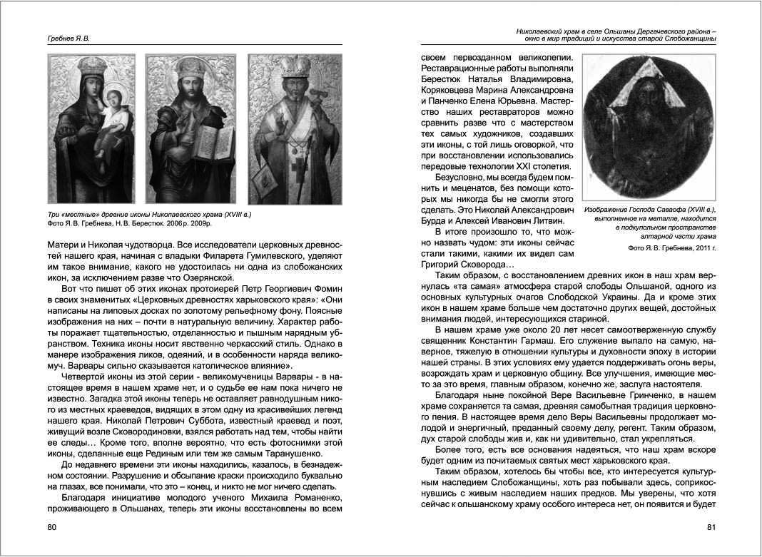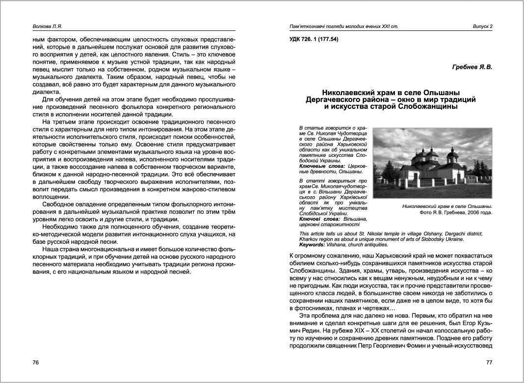 Гребнєв Я. В. Николаевский храм в селе Ольшаны Дергачевского района - окно в мир традиций и искусства старой Слобожанщины