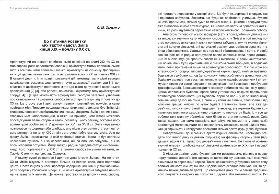 Обченко: До питання розвитку архітектури міста Зміїв кінця ХІХ – початку ХХ ст.